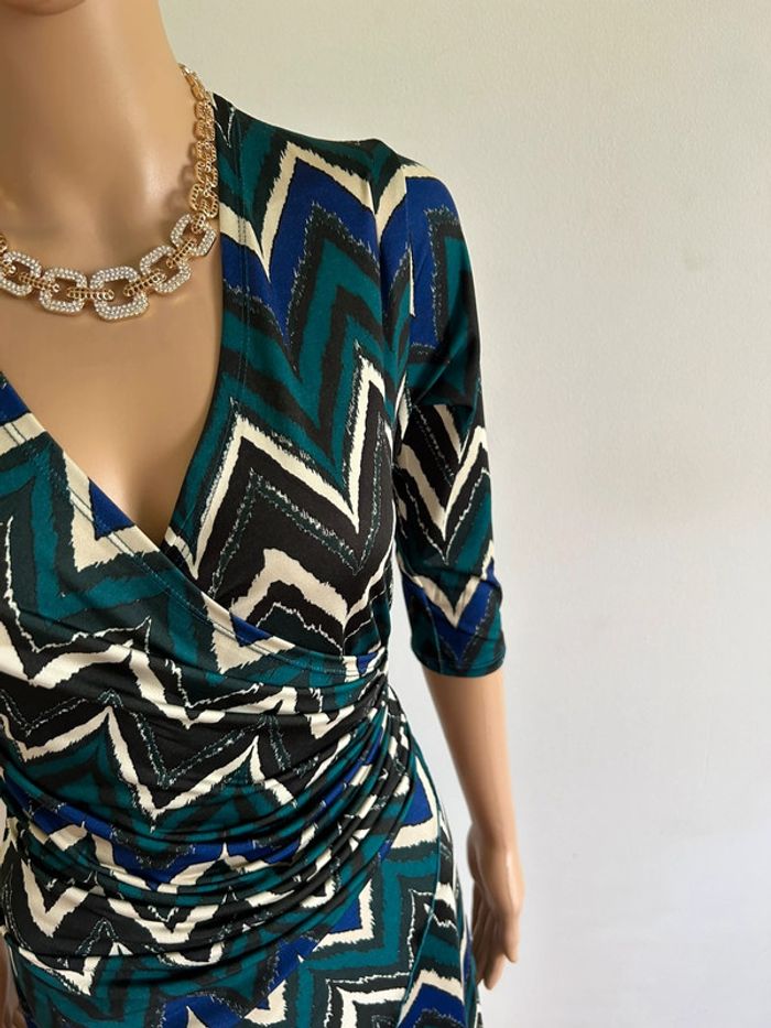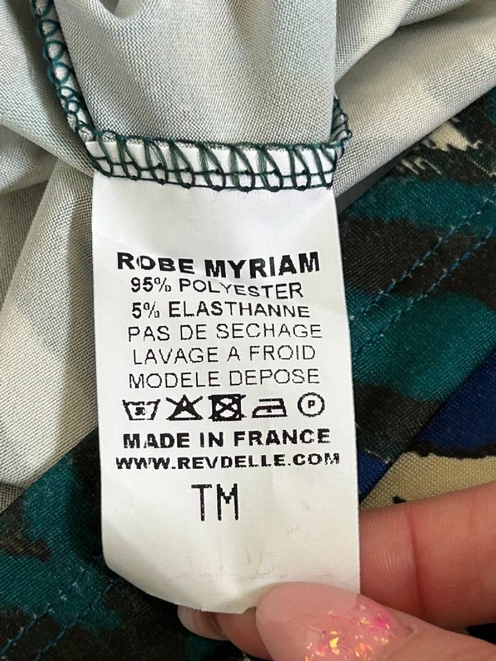 Magnifique robe imprimée à manches courtes, de marque Revd’elle. Taille M. Elle est neuve avec étiquette. aisselle à aisselle 43 cms et plus épaule à épaule 36 cms et plus taille 30 cms à 40 cms longueur depuis épaule 96 cms Le tissu est extensible 95% polyester et 5% elasthanne Le prix reste négociable dans la limite du raisonnable. Un petit cadeau dans le colis 🌸 (Boîte 43)