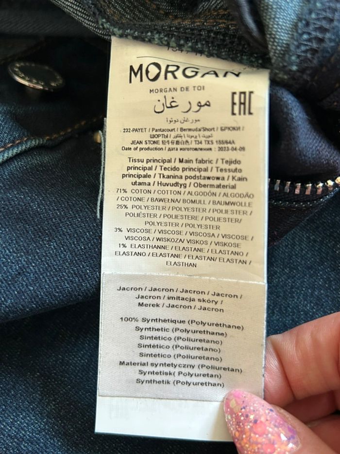 Jean bleu marine neuf avec sequins Morgan taille 34 (valeur 65€) - photo numéro 16