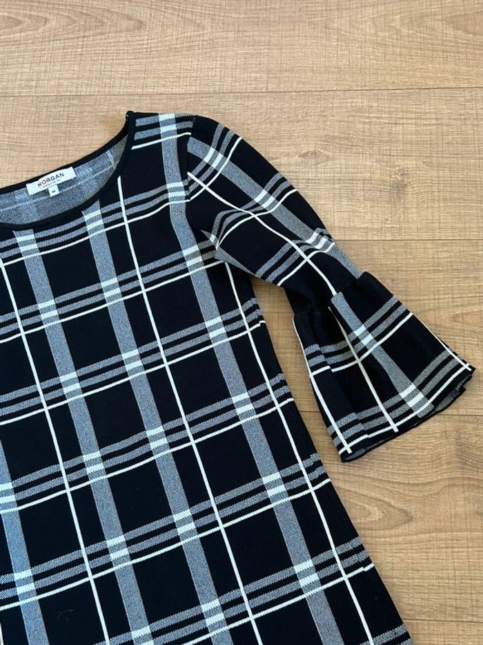Magnifique robe noire et blanche à manches courtes, de marque Morgan. Taille M. Portée une fois, elle est comme neuve. aisselle à aisselle 36 cms à 46 cms épaule à épaule 36 cms à 44 cms taille 34 cms à 44 cms longueur depuis épaule 91 cms Le tissu est extensible Étiquette intérieure de composition coupée Le prix reste négociable dans la limite du raisonnable. Un petit cadeau dans le colis 🌸