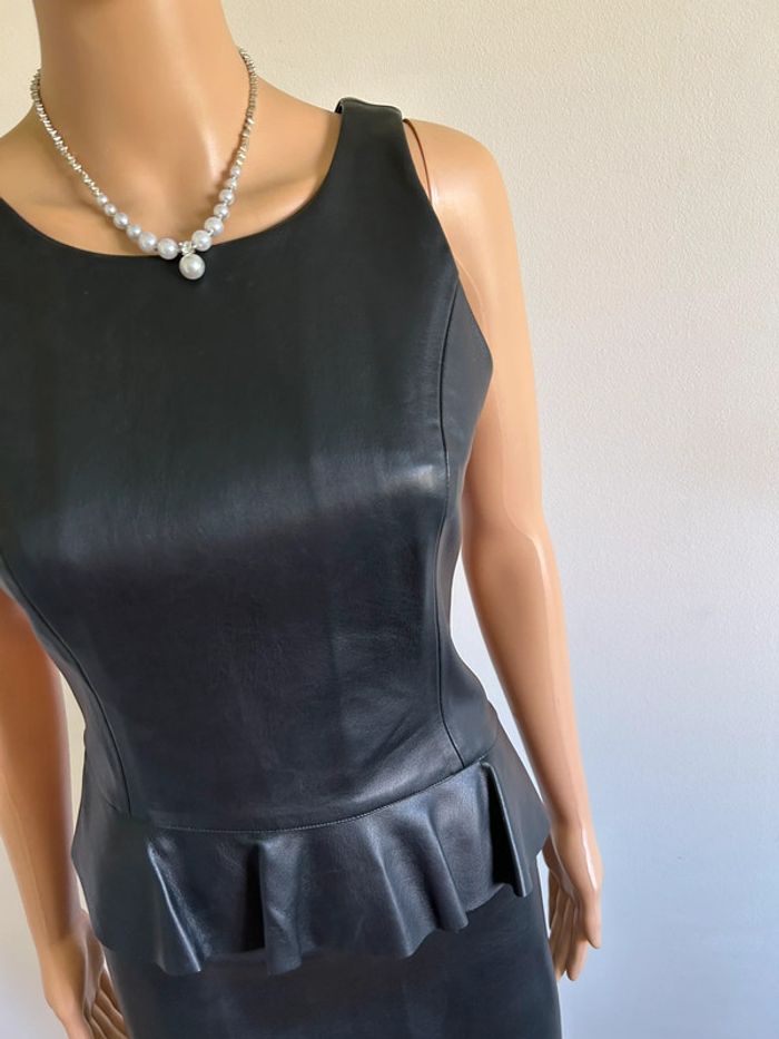 Magnifique robe noire en simili cuir sans manches, de marque Morgan. Fermeture dans le dos. Taille 36. Jamais portée, état neuf. aisselle à aisselle 42 cms taille 36 cms longueur depuis épaule 83 cms 100% synthétique Le prix reste négociable dans la limite du raisonnable. Un petit cadeau dans le colis 🌸