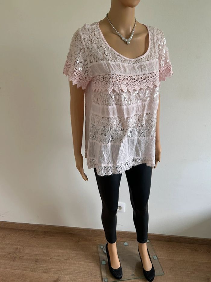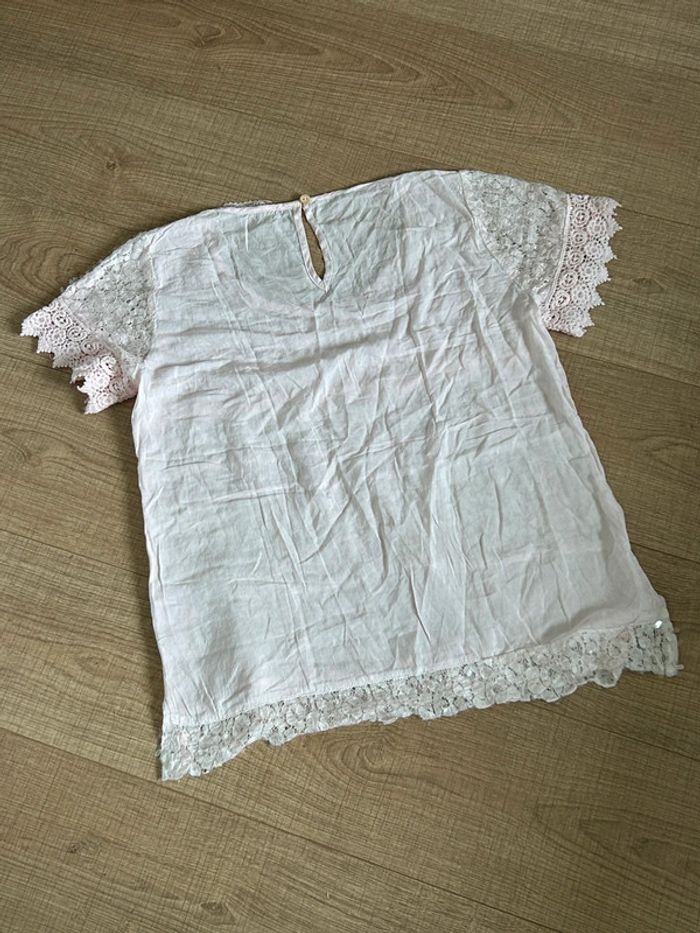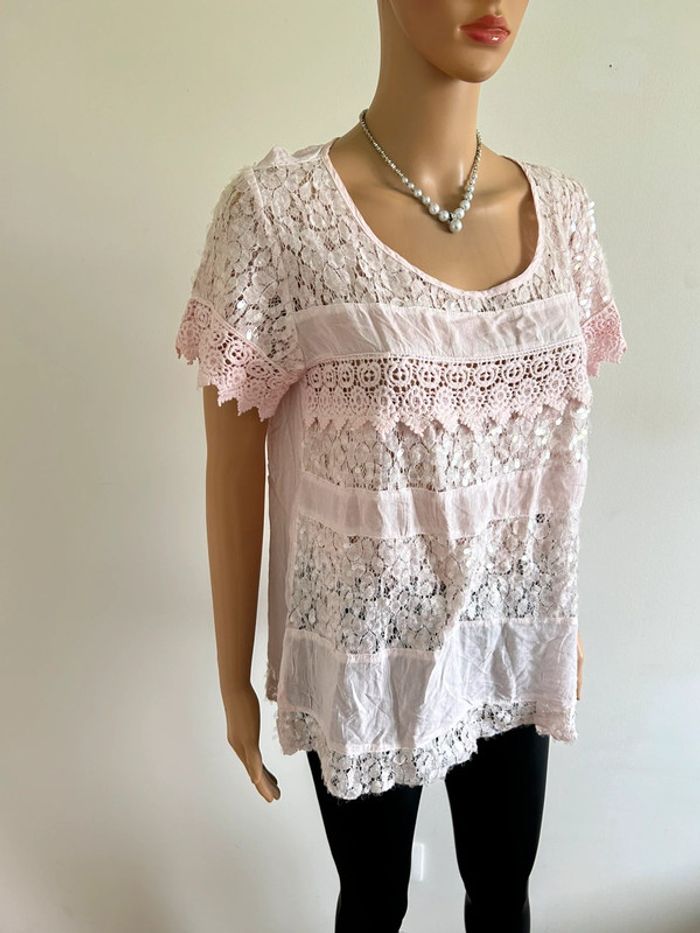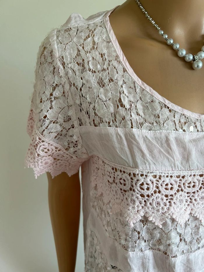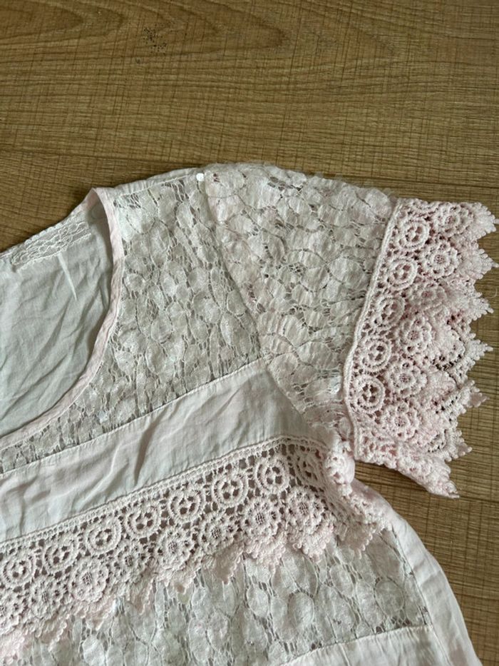 Blouse rose claire en dentelle taille M/L jamais portée - photo numéro 13