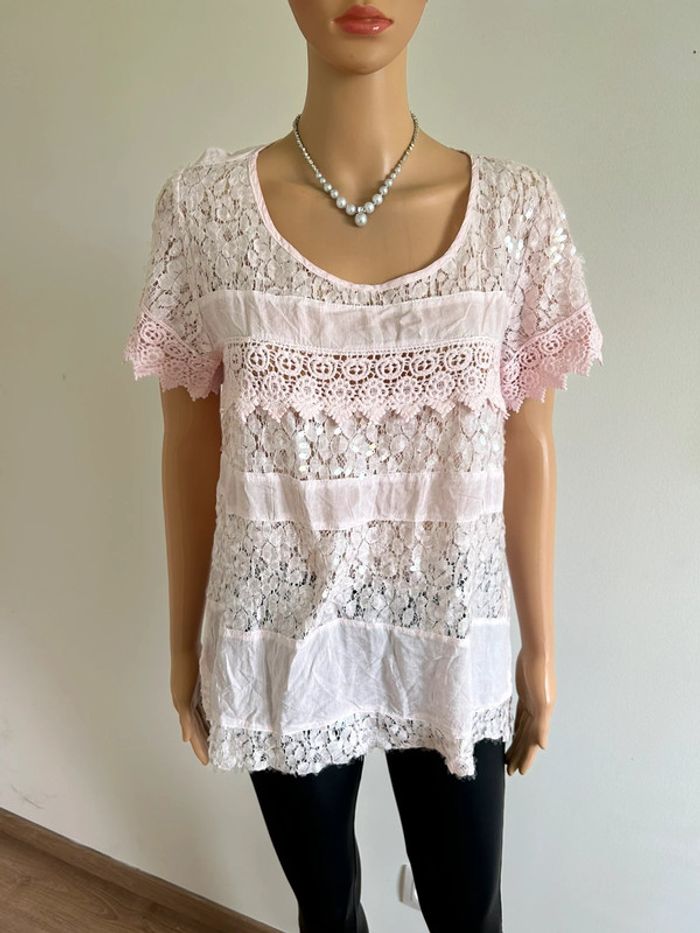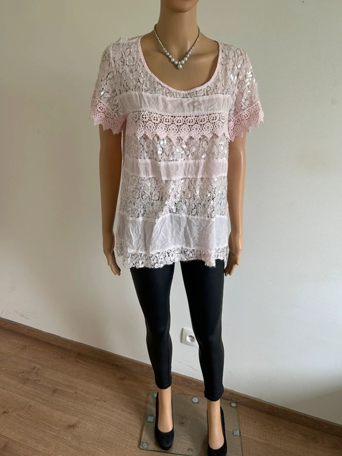 Blouse rose claire en dentelle taille M/L jamais portée - photo numéro 1