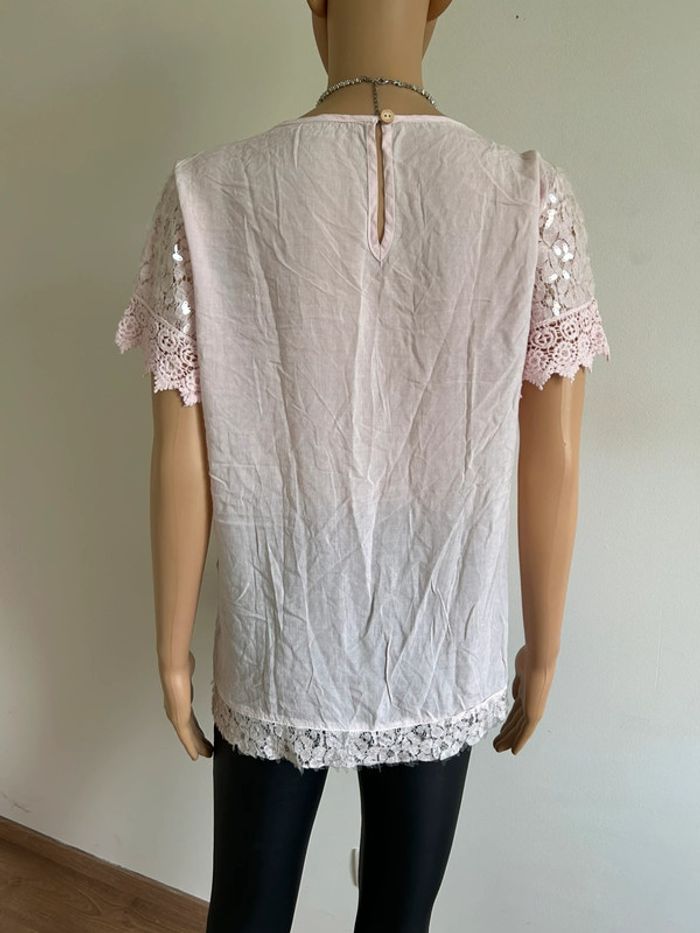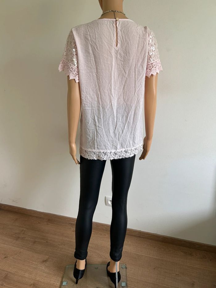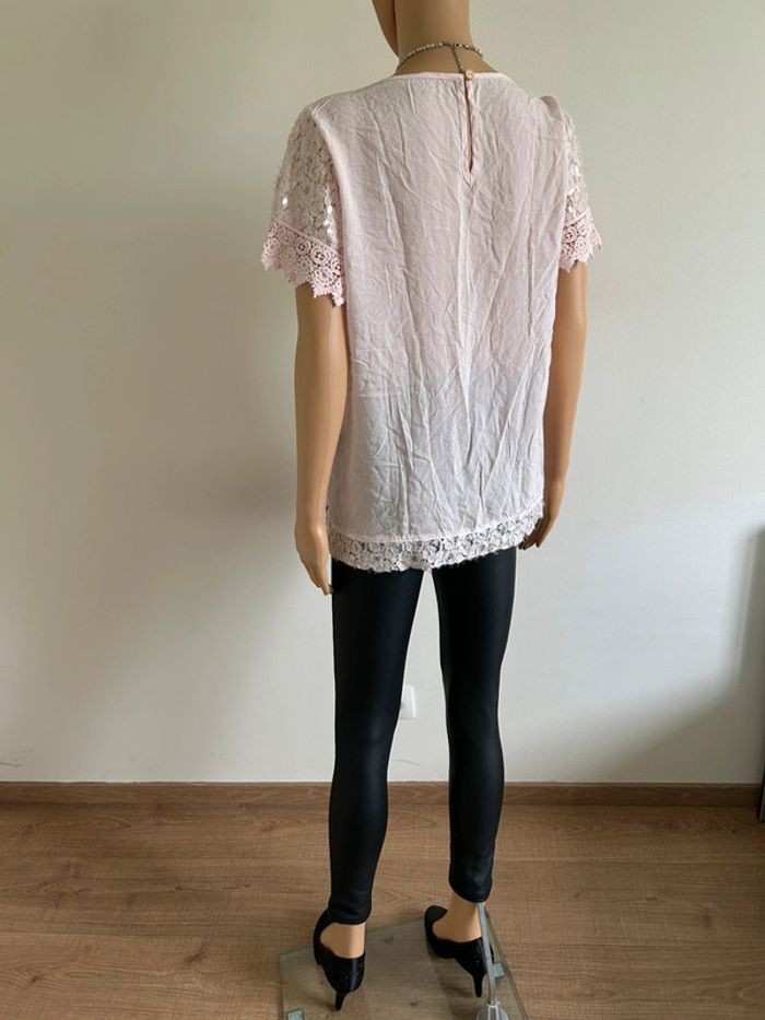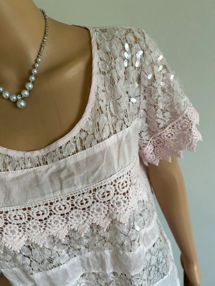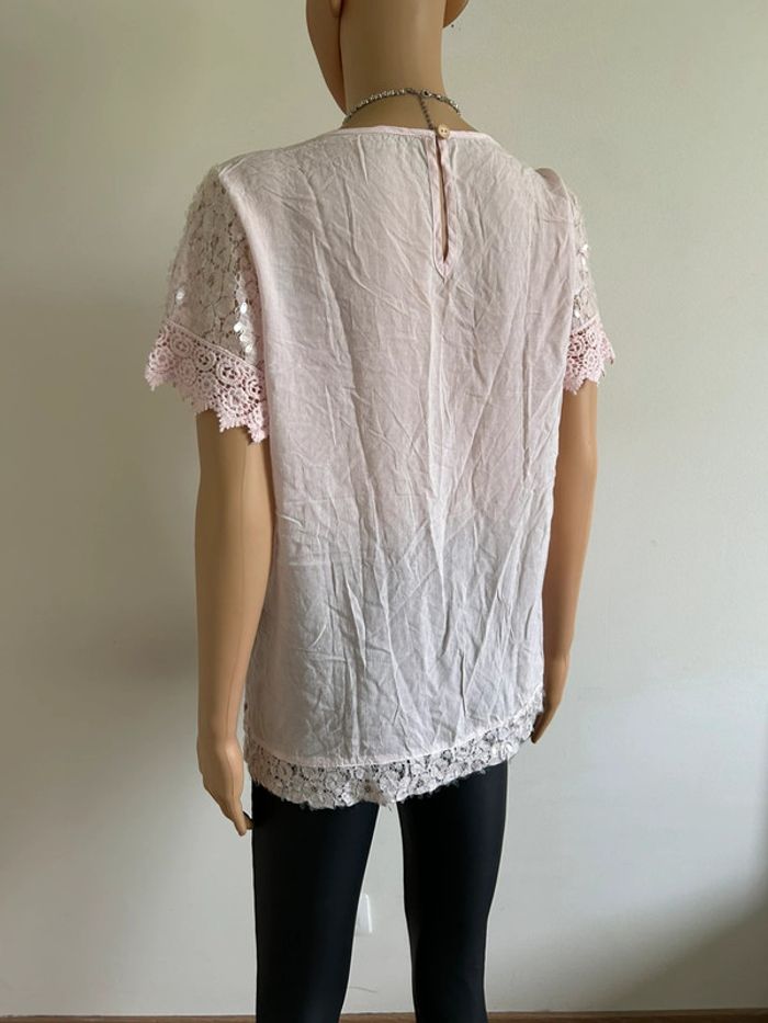 Blouse rose claire en dentelle taille M/L jamais portée - photo numéro 7