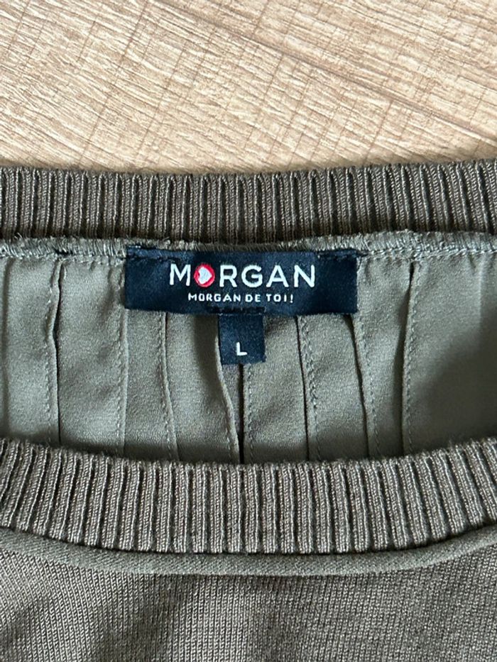 Jolie blouse kaki bi matière avec manches 3/4, de marque Morgan. Taille L. Elle est neuve, jamais portée. aisselle à aisselle 51 cms taille 57 cms longueur depuis épaule 59 cms à 71 cms 80% viscose et 20% polyamide Le prix reste négociable dans la limite du raisonnable. Un petit cadeau dans le colis 🌸 (Boîte 5)
