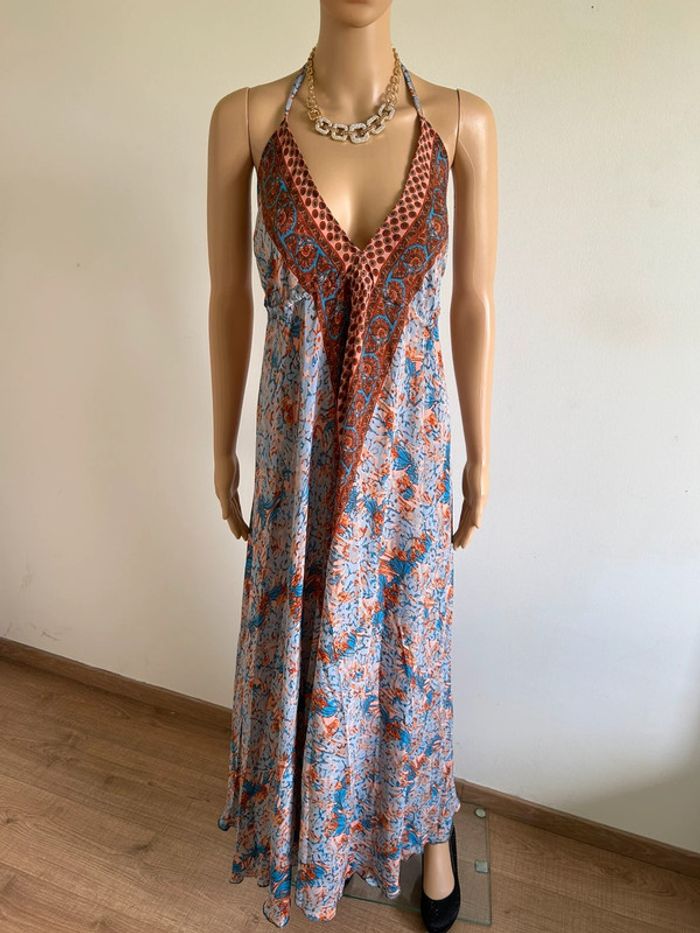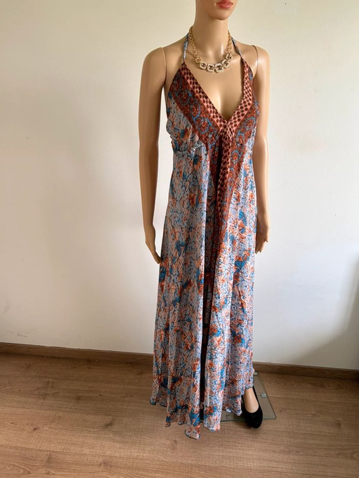 Robe longue neuve en soie avec dos nu Trebol taille S - photo numéro 1