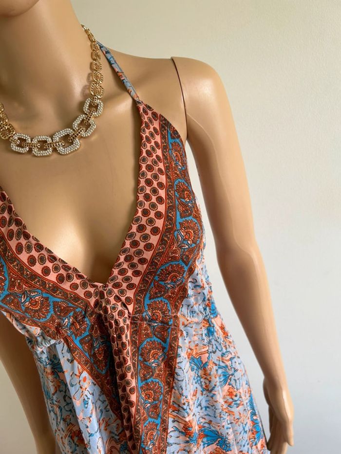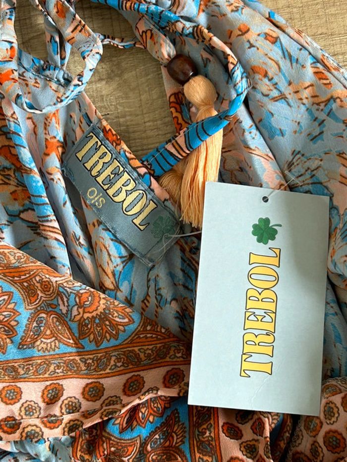 Magnifique robe longue imprimée en soie, avec dos nu, de marque Trebol. Taille S. Elle est neuve avec étiquette. 70% sole et 30% polyester Le prix reste négociable dans la limite du raisonnable. Un petit cadeau dans le colis 🌸
