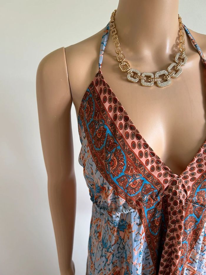 Robe longue neuve en soie avec dos nu Trebol taille S - photo numéro 15