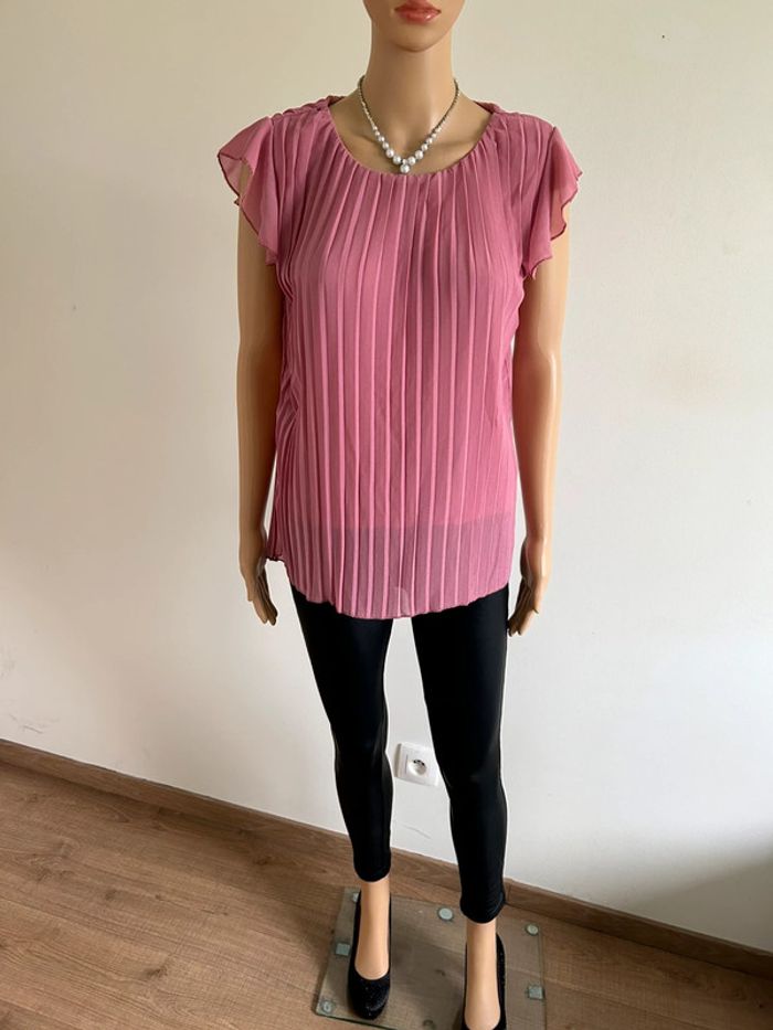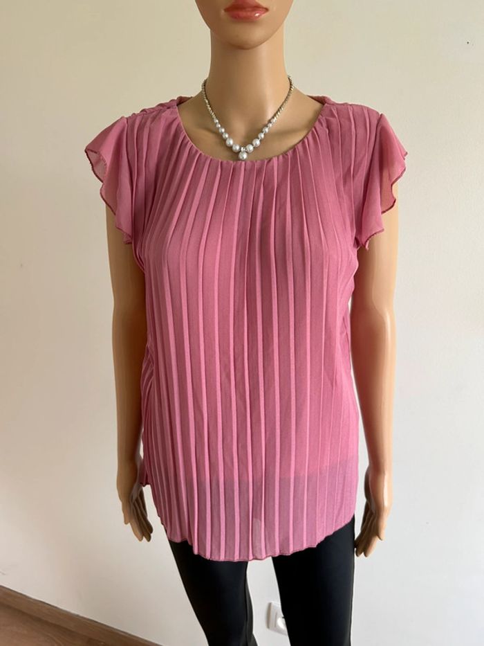 Blouse rose plissée à manches courtes taille S jamais portée - photo numéro 1