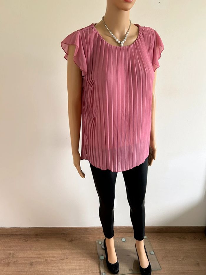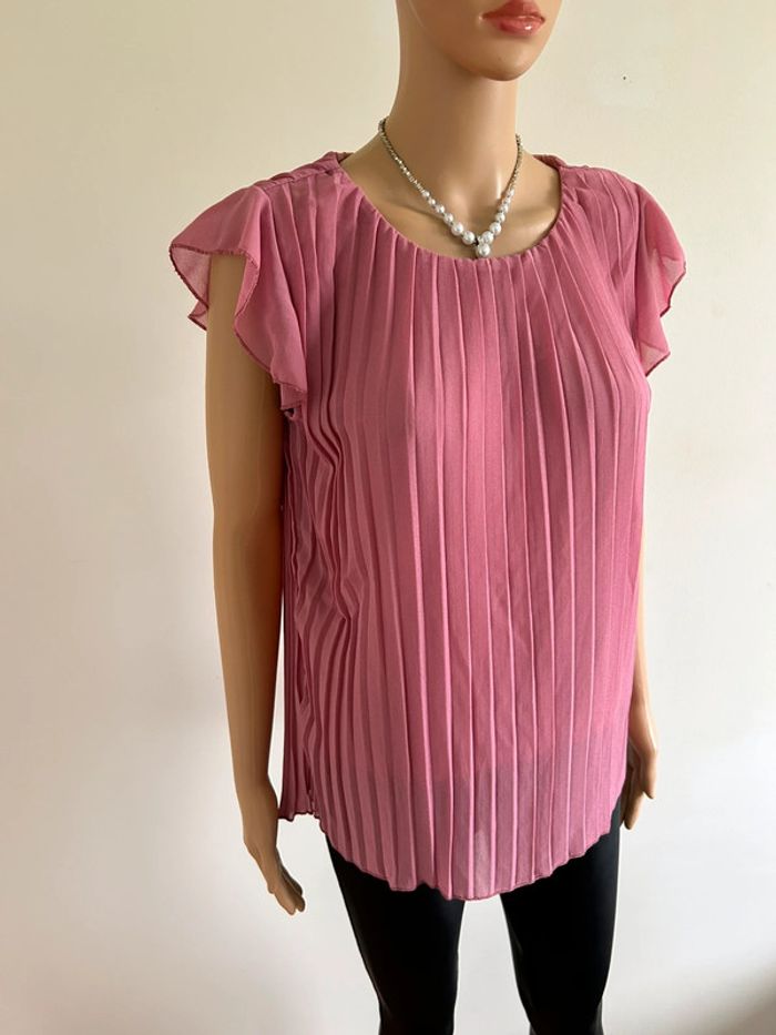 Blouse rose plissée à manches courtes taille S jamais portée - photo numéro 11