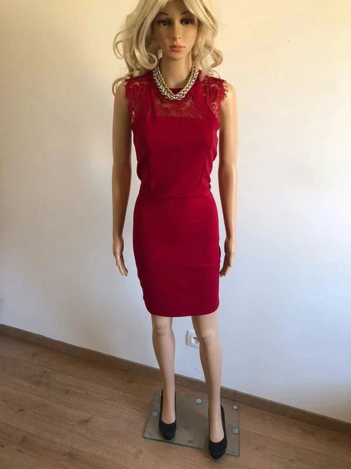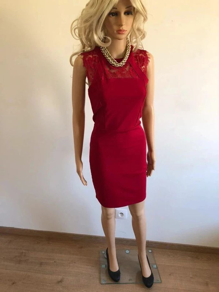 Robe rose fuschia, limite rouge, sans manches et avec dentelle, de marque Coolcat. Fermeture dans le dos. Taille M. Jamais portée, état neuf. aisselle à aisselle 40 cms à 48 cms taille 37 cms à 42 cms longueur depuis épaule 91 cms Le tissu est extensible 95% polyester et 5% elasthanne Le prix reste négociable dans la limite du raisonnable. Un petit cadeau accompagnera cet achat 😊 (Boîte 26)