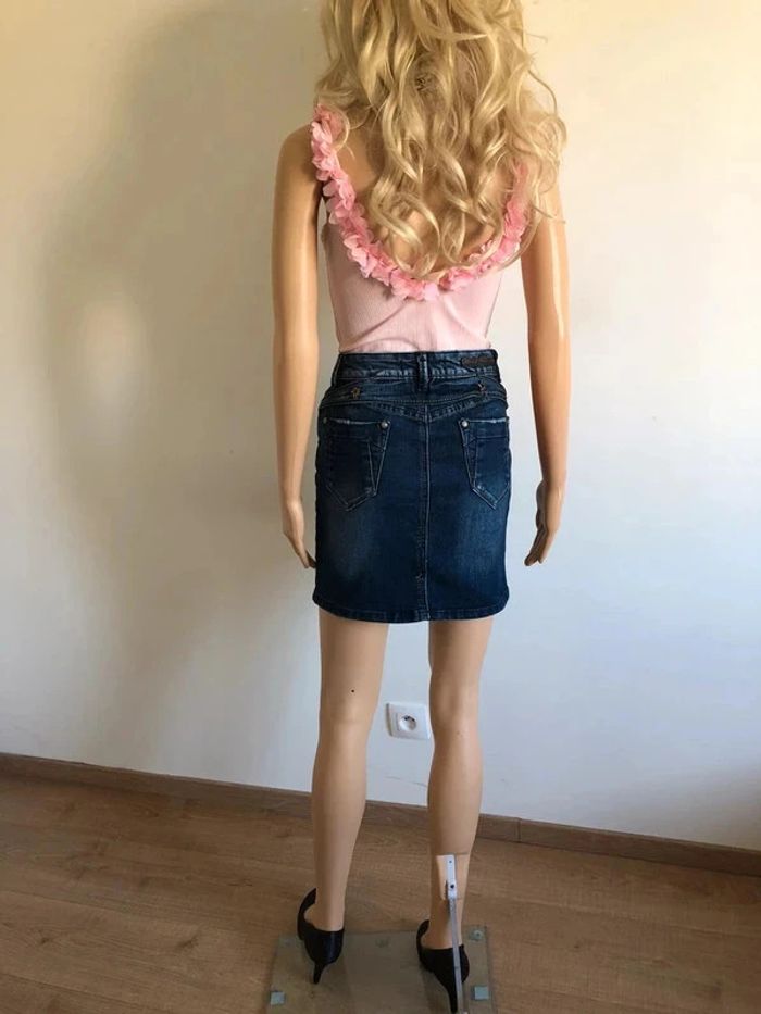 Jupe bleue marine en jean taille 38 TBE - photo numéro 15