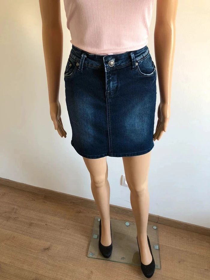 Jupe bleue marine en jean taille 38 TBE - photo numéro 1