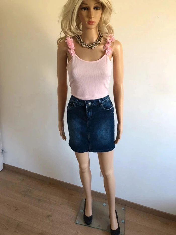 Jolie jupe bleue marine en jean. Taille 38. Peu portée, en très bon état. taille 37 cms à 40 cms longueur 41 cms Le tissu est extensible 95% coton et 5% elasthanne Le prix reste négociable dans la limite du raisonnable.