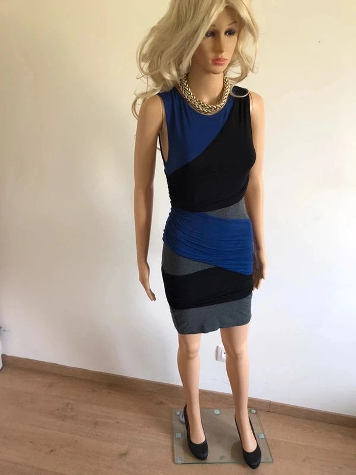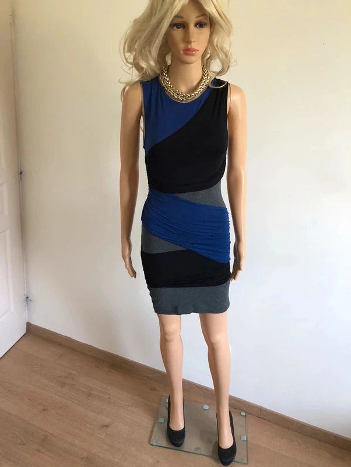 Robe bleue grise et noire sans manches Mango taille S TBE (taille petit) - photo numéro 1
