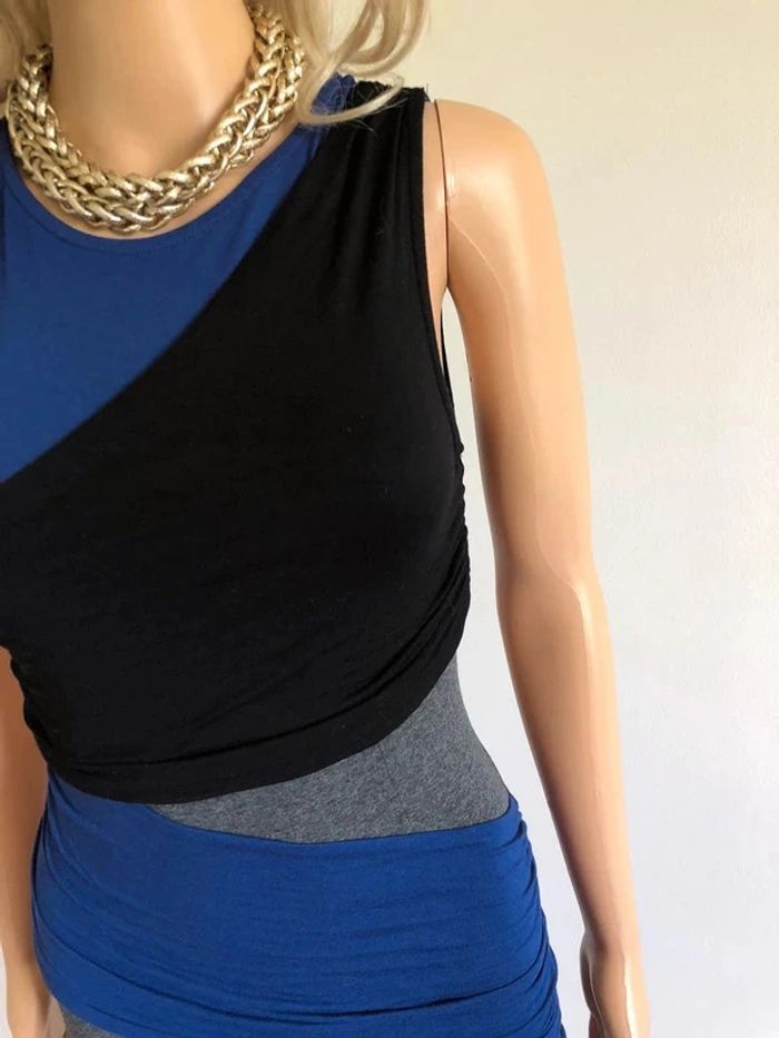 Robe bleue grise et noire sans manches Mango taille S TBE (taille petit) - photo numéro 3