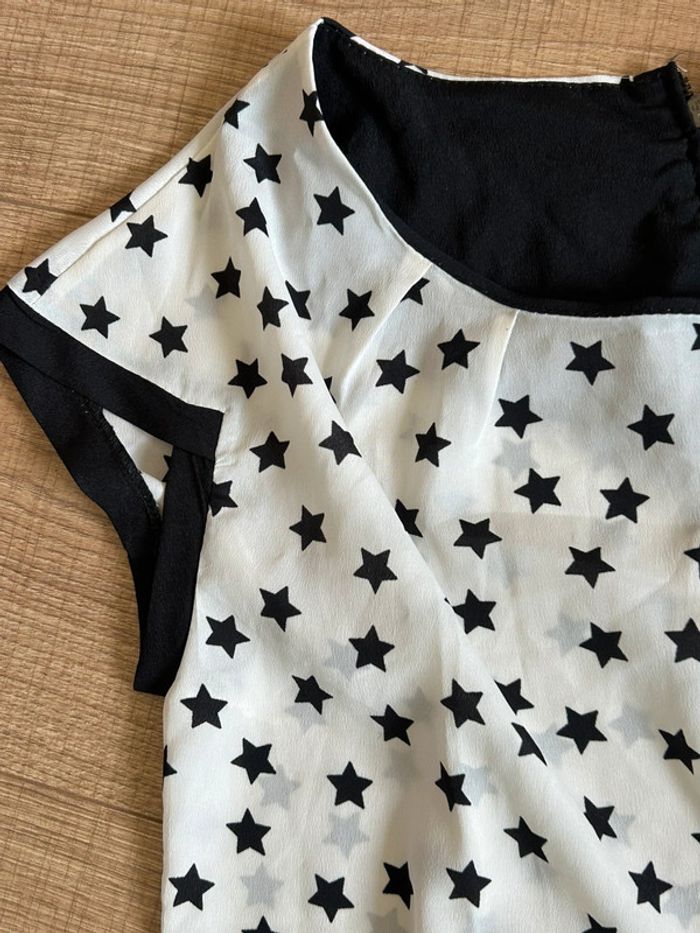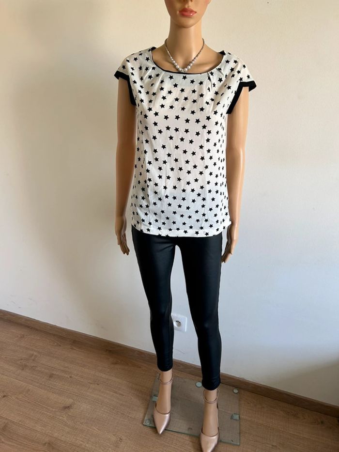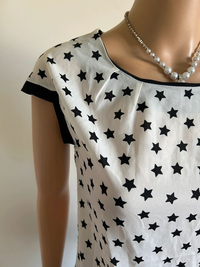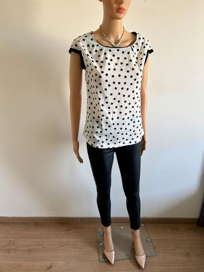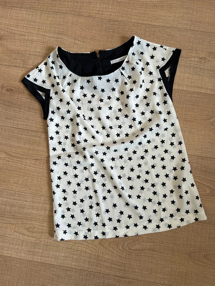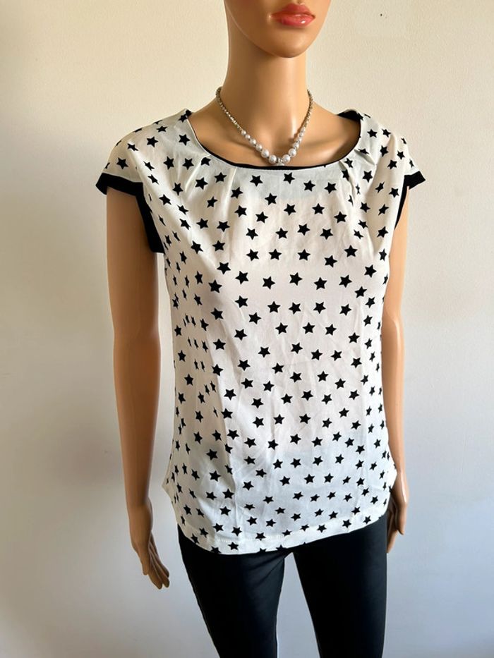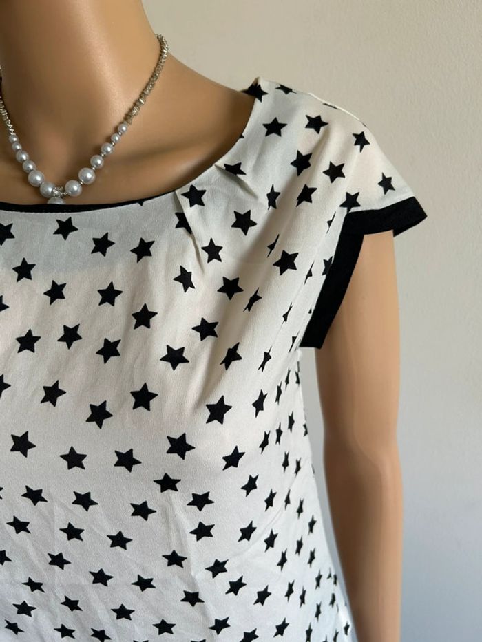 Jolie blouse blanche et noire à manches courtes, de marque Sud Express. Petite fermeture dans le haut du dos. Taille S. Jamais portée, état neuf. aisselle à aisselle 42 cms taille 42 cms longueur depuis épaule 59 cms 100% polyester Le prix reste négociable dans la limite du raisonnable. Un petit cadeau dans le colis 🌸 (Boîte 51)