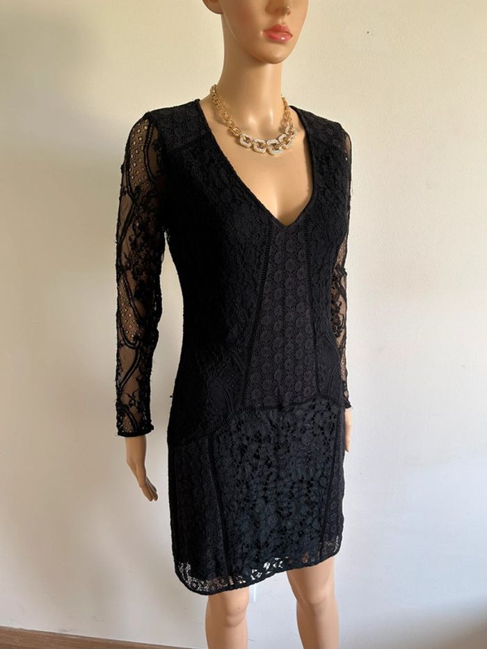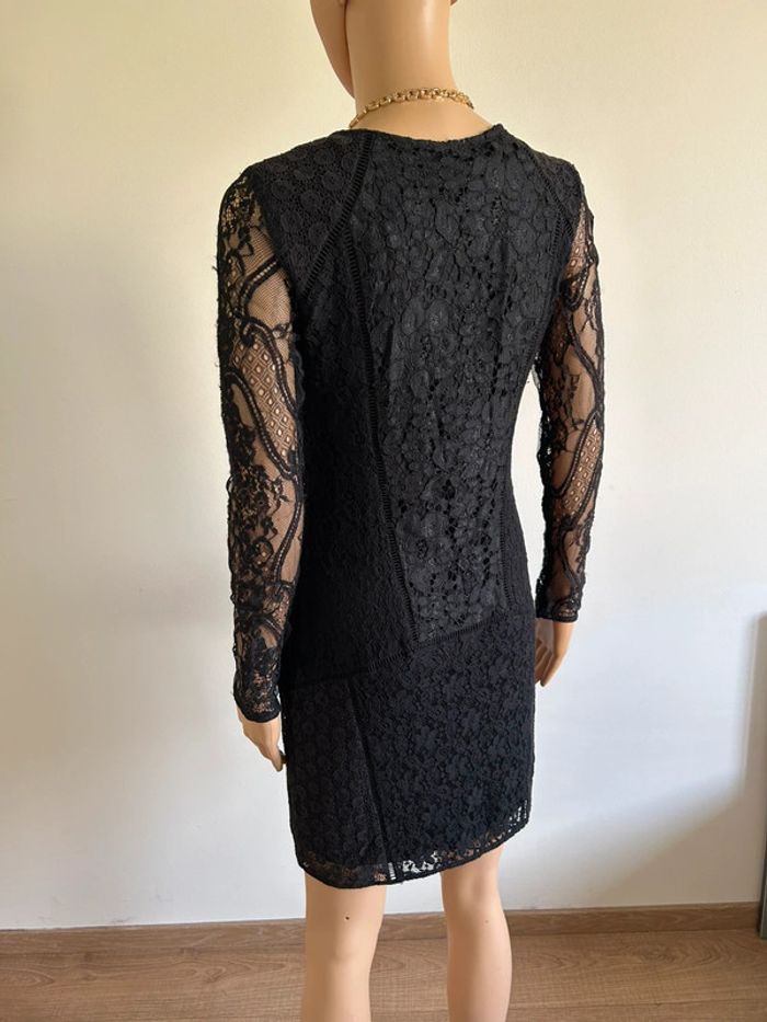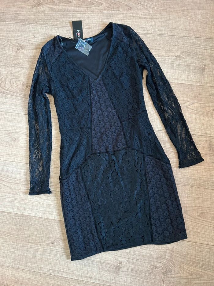 Jolie robe noire en dentelle, à manches longues, de marque Morgan. Fermeture sur le côté. Taille XS. Elle est neuve avec étiquette (valeur 75€). aisselle à aisselle 41 cms et plus épaule à épaule 37 cms et plus longueur manches 60 cms taille 35 cms et plus longueur depuis épaule 86 cms Le tissu est extensible 100% polyamide Le prix reste négociable dans la limite du raisonnable. Un petit cadeau dans le colis 🌸 (Boîte 12)