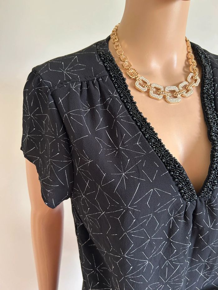Jolie robe noire et blanche à manches courtes, de marque LolaLiza. Perles noires au niveau de l’encolure. Taille française 44 mais pourrait convenir pour du 42. Jamais portée, état neuf. aisselle à aisselle 52 cms épaule à épaule 40 cms taille 48 cms longueur depuis épaule 97 cms 100% polyester Le prix reste négociable dans la limite du raisonnable. Un petit cadeau dans le colis 🌸 (Boîte 22)