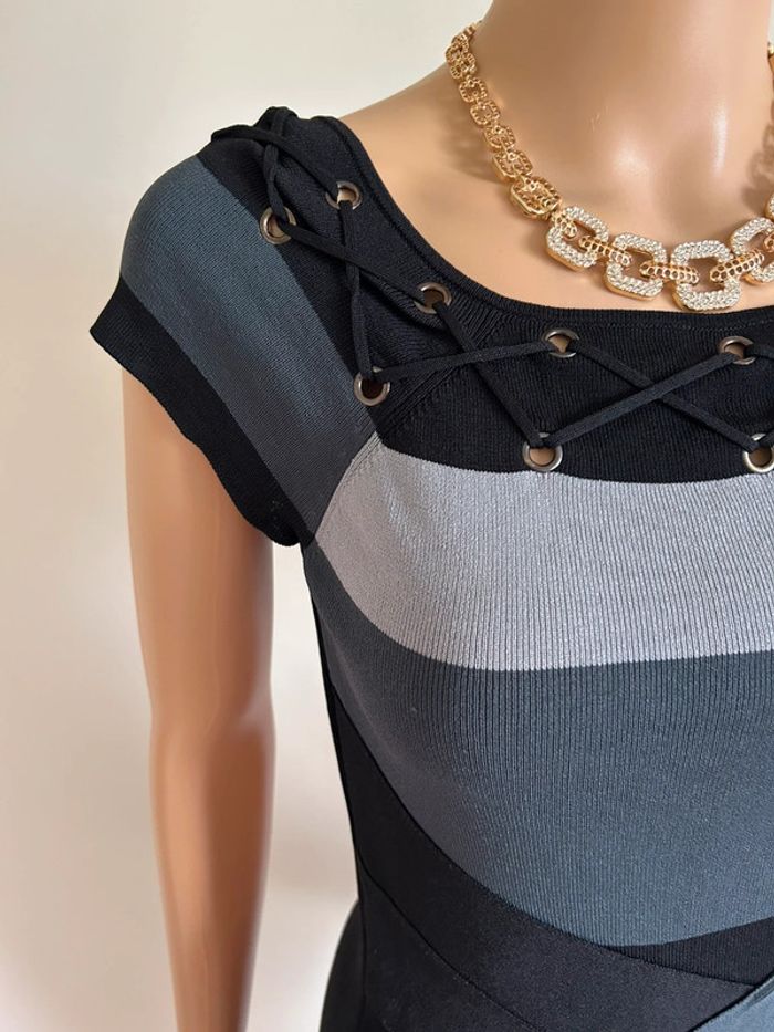 Magnifique robe grise et noire à manches courtes, de marque Morgan. Taille S. Jamais portée, état neuf. aisselle à aisselle 33 cms à 45 cms taille 31 cms à 39 cms longueur depuis épaule 89 cms Le tissu est extensible Étiquette intérieure de composition coupée Le prix reste négociable dans la limite du raisonnable. Un petit cadeau dans le colis 🌸 (Boîte 31)