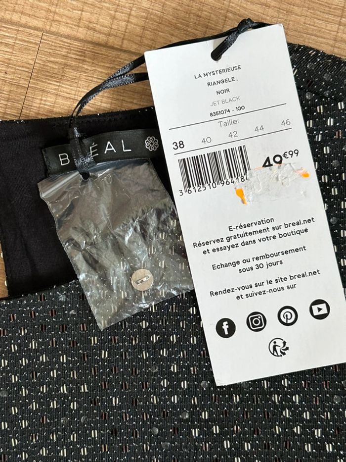 Magnifique robe scintillante noire et argentée, à manches courtes, de marque Breal. Taille 38. Elle est neuve avec étiquette (valeur 50€). aisselle à aisselle 44 cms et plus épaule à épaule 36 cms et plus taille 43 cms et plus longueur depuis épaule 92 cms Le tissu est extensible 82% polyester, 15% fil métallisé et 5% elasthanne Le prix reste négociable dans la limite du raisonnable. Un petit cadeau dans le colis 🌸 (Boîte 25)