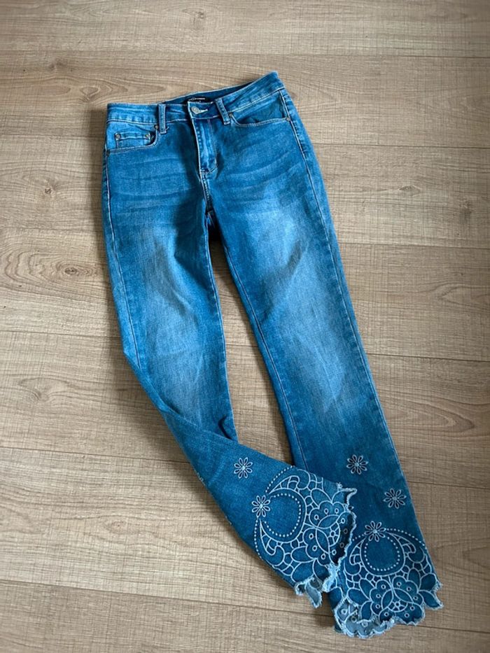 Jean bleu avec broderies Mosquitos taille 36 TBE - photo numéro 1
