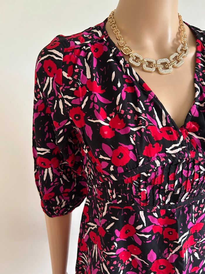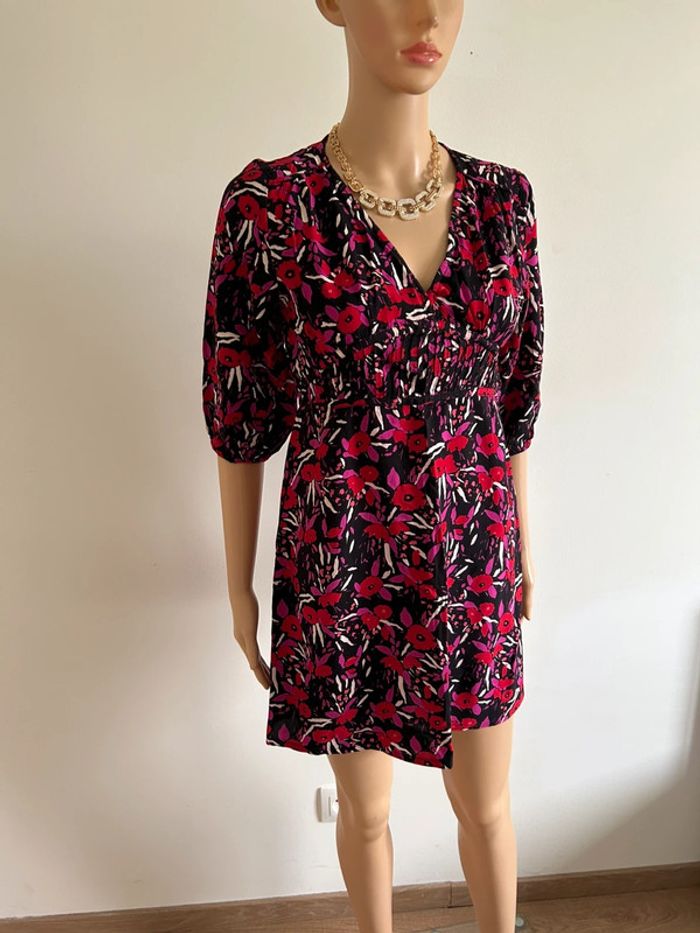 Jolie robe courte imprimée, de marque An’ge. Taille S. Portée plusieurs fois, en très bon état. aisselle à aisselle 43 cms épaule à épaule 36 cms taille 36 cms longueur depuis épaule 79 cms 100% viscose Le prix reste négociable dans la limite du raisonnable. Un petit cadeau dans le colis 🌸 (Boîte 29)
