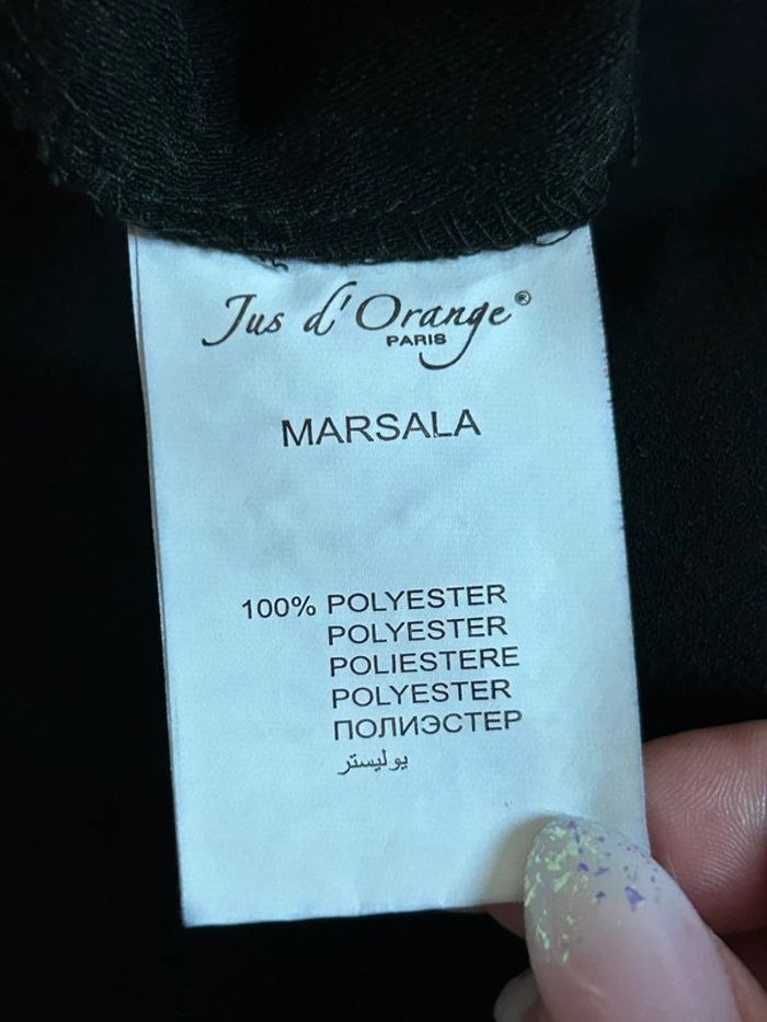 Jolie jupe noire mi longue avec volant, de marque Jus d’Orange. Fermeture à l’arrière. Taille 3 qui correspond à du 40. Jamais portée, état neuf. taille 39 cms longueur 67 cms 100% polyester Le prix reste négociable dans la limite du raisonnable. Un petit cadeau dans le colis 🌸