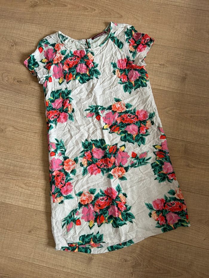 Jolie robe blanche et imprimée fleurie en soie, à manches courtes, de marque Comptoir des Cotonniers. Taille 36. Jamais portée, état neuf. aisselle à aisselle 45 cms taille 46 cms longueur depuis épaule 90 cms 68% soie et 32% viscose Le prix reste négociable dans la limite du raisonnable. Un petit cadeau dans le colis 🌸 (Boîte 30)
