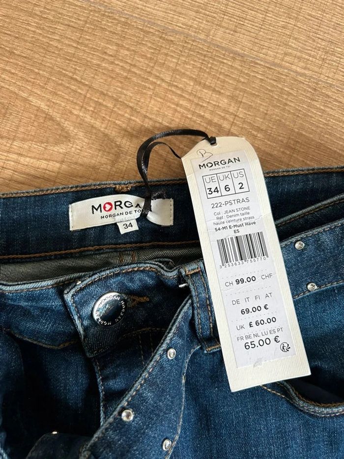 Jean bleu marine neuf avec strass Morgan taille 34 (valeur 65€) taille grand - photo numéro 6
