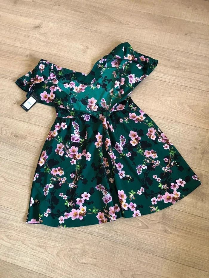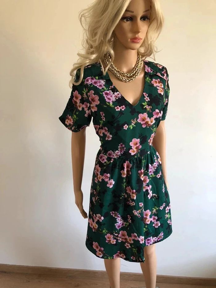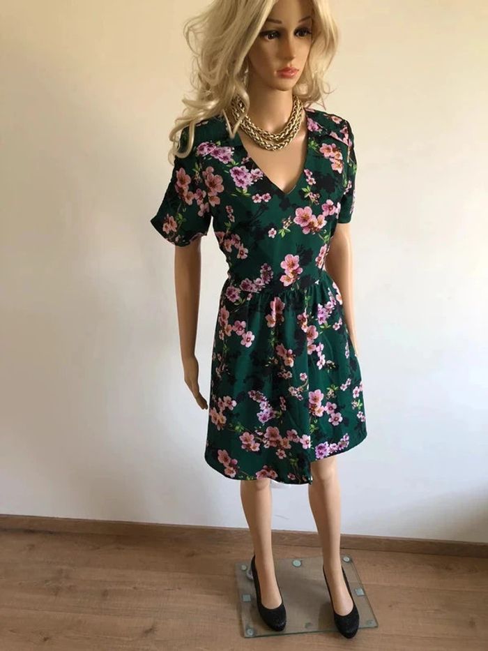 Robe verte et fleurie neuve à manches courtes New Look taille 40 (valeur 25€) taille petit - photo numéro 1