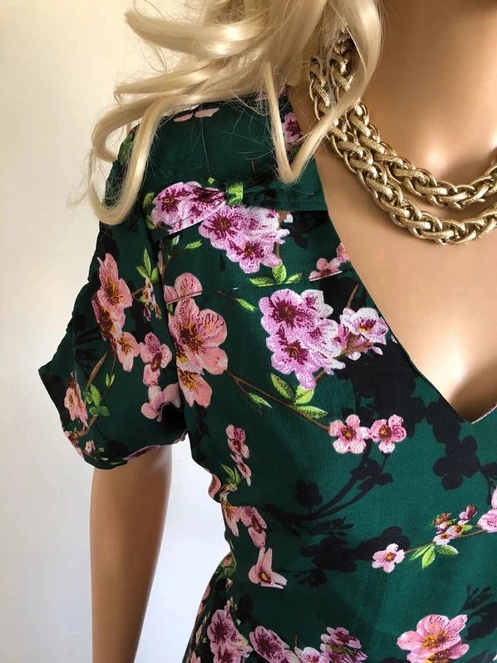 Robe verte et fleurie neuve à manches courtes New Look taille 40 (valeur 25€) taille petit - photo numéro 9