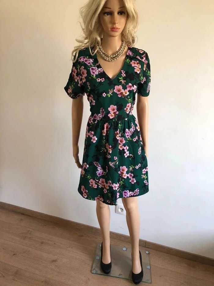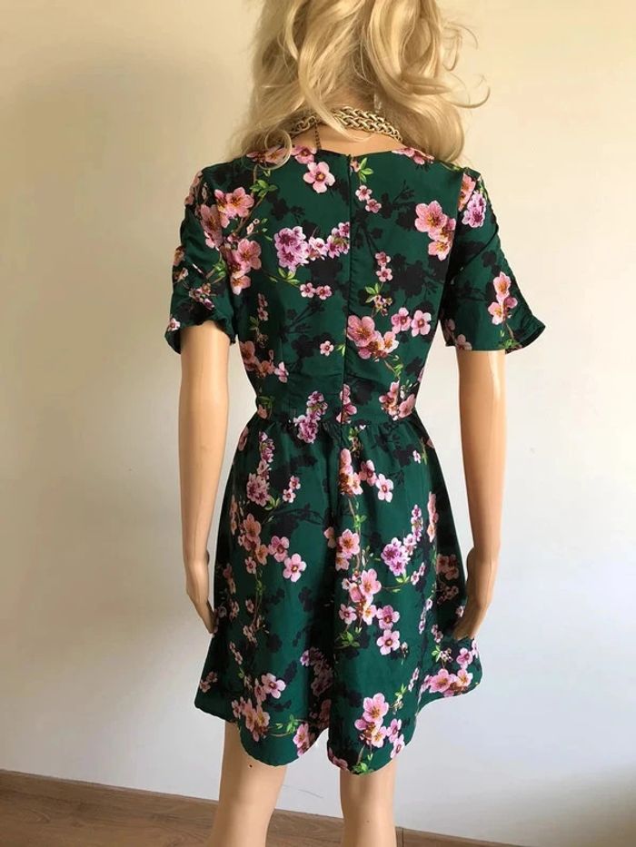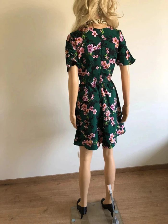 Robe verte et fleurie neuve à manches courtes New Look taille 40 (valeur 25€) taille petit - photo numéro 14