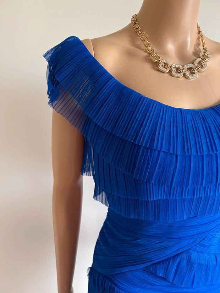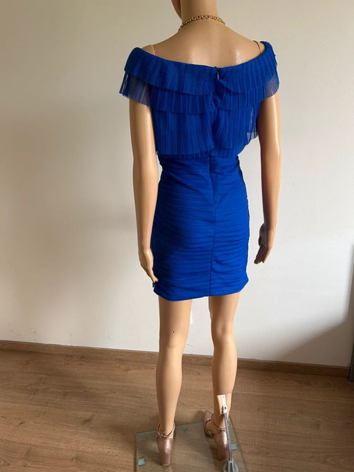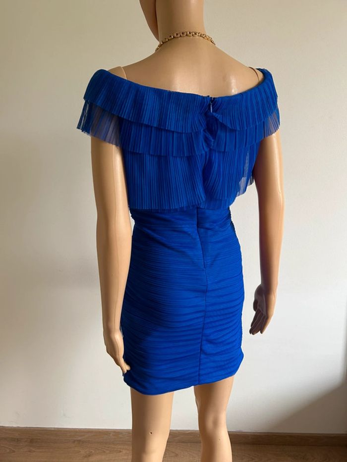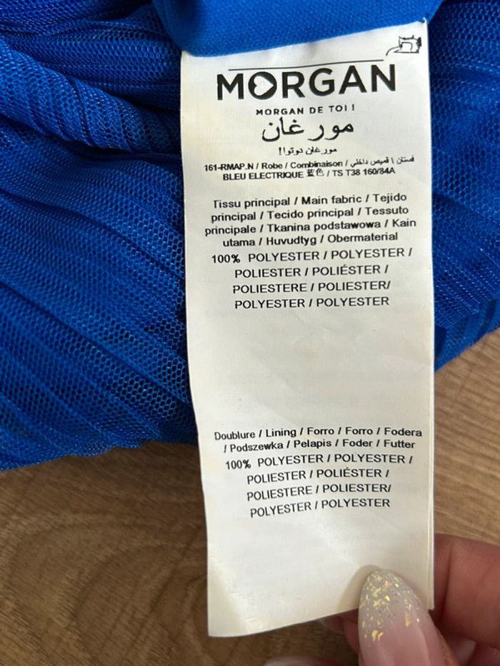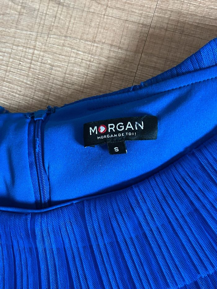 Magnifique robe bleue à volants, sans manches, de marque Morgan. Fermeture dans le dos. Taille S. Jamais portée, état neuf. aisselle à aisselle 39 cms à 47 cms taille 35 cms à 39 cms longueur depuis épaule 82 cms Le tissu est extensible 100% polyester Le prix reste négociable dans la limite du raisonnable. Un petit cadeau dans le colis 🌸 (Boîte 30)