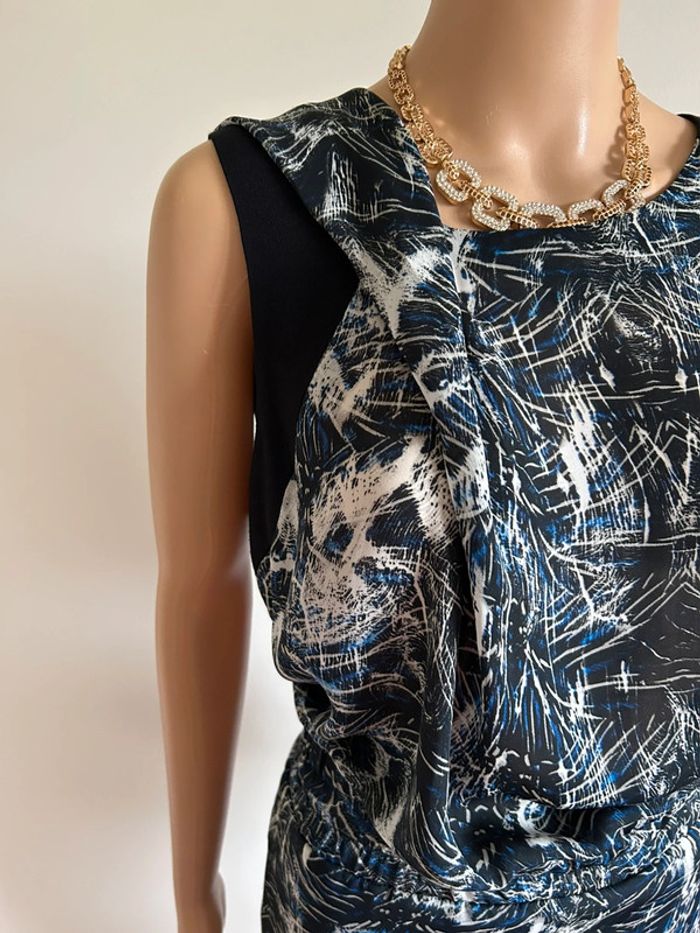 Jolie robe imprimée sans manches, de marque IKKS. Petite fermeture dans le haut du dos. Taille 44. Jamais portée, état neuf. aisselle à aisselle 53 cms taille 48 cms longueur depuis épaule 89 cms 100% polyester Le prix reste négociable dans la limite du raisonnable. Un petit cadeau dans le colis 🌸 (Boîte 22)