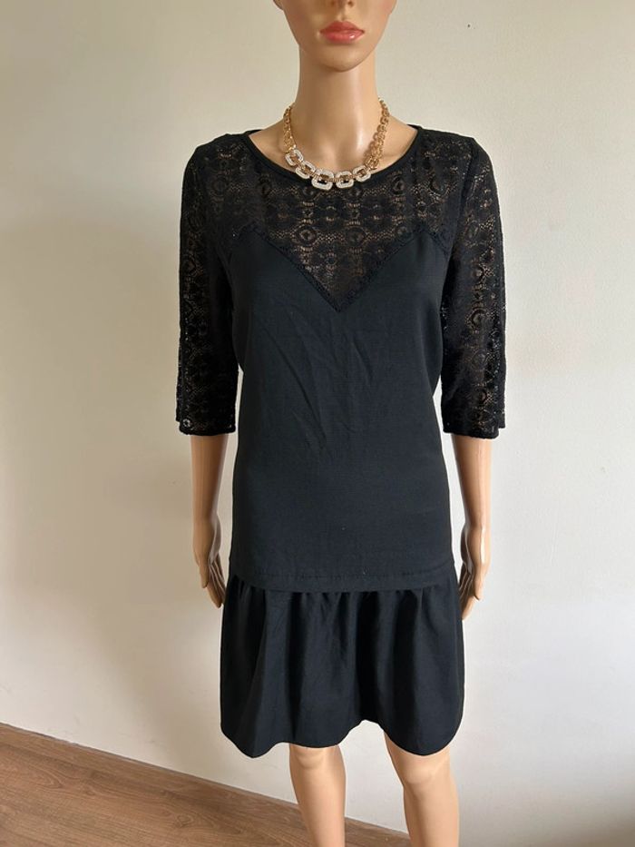 Robe noire à manches courtes avec dentelle Kookai taille 42 TBE - photo numéro 1