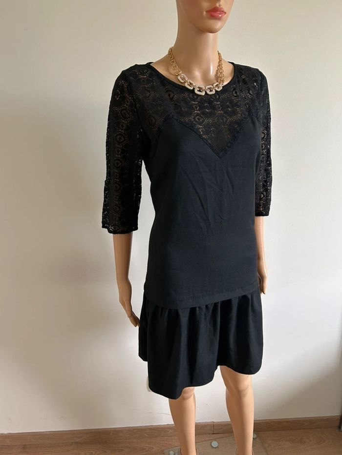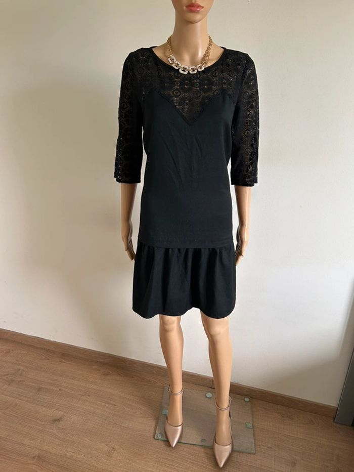 Robe noire à manches courtes avec dentelle Kookai taille 42 TBE - photo numéro 2
