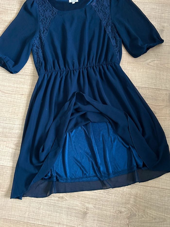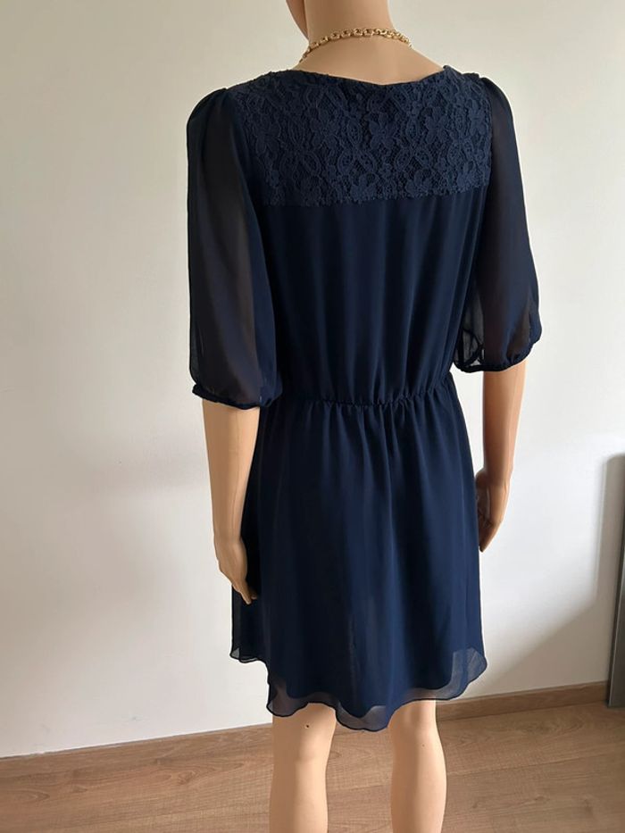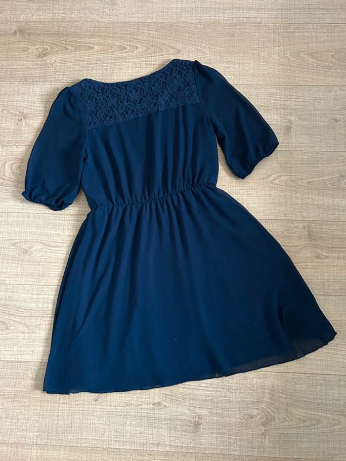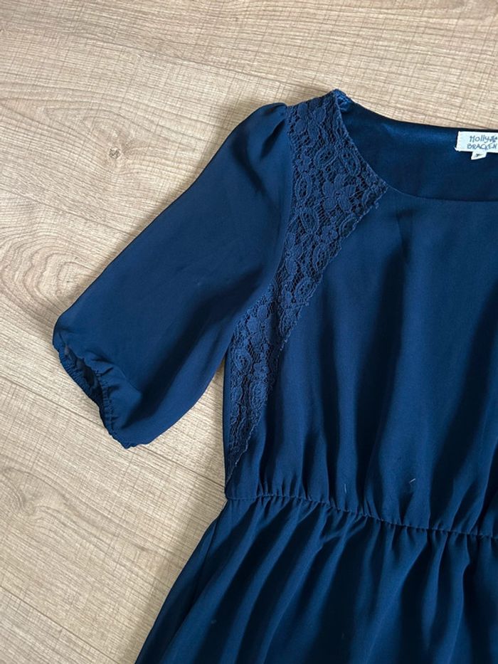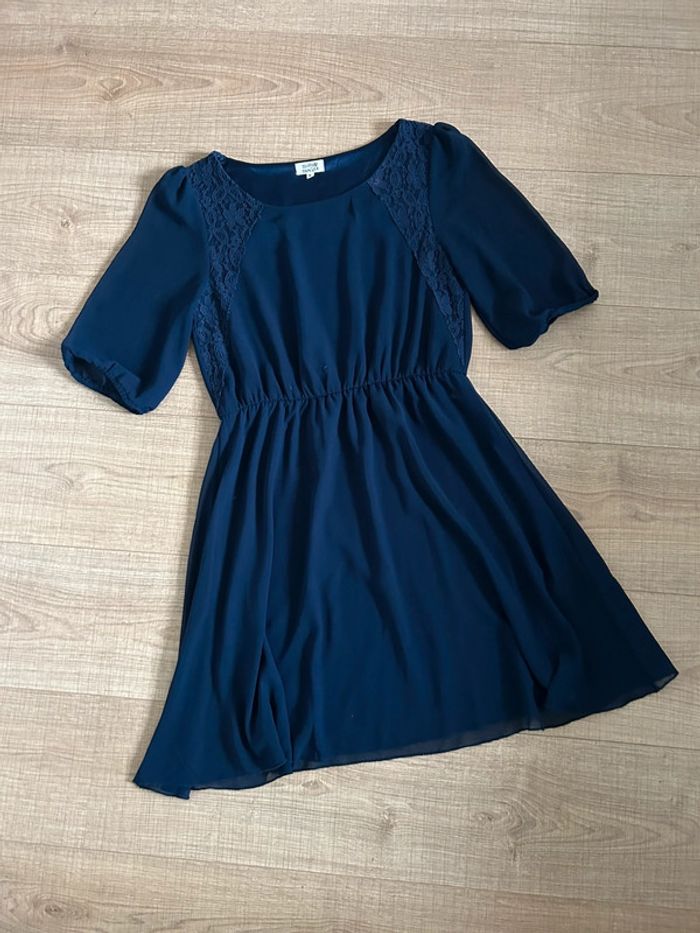 Jolie robe bleue marine à manches courtes, avec dentelle, de marque Molly Bracken. Taille 1 qui correspond à du 36. Peu portée, en très bon état. aisselle à aisselle 44 cms épaule à épaule 37 cms taille 35 cms à 48 cms longueur depuis épaule 84 cms La taille est extensible 80% polyester et 20% coton Le prix reste négociable dans la limite du raisonnable. Un petit cadeau dans le colis 🌸 (Boîte 30)