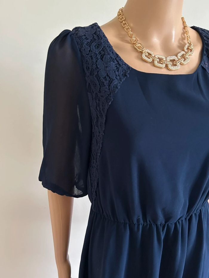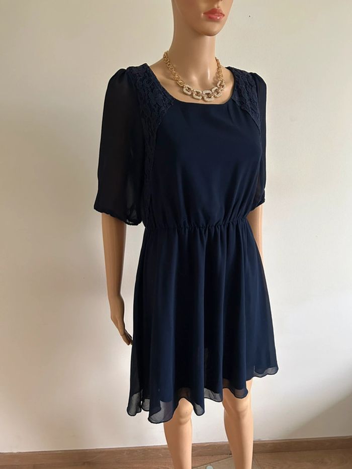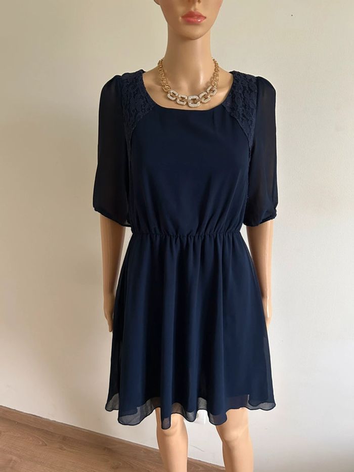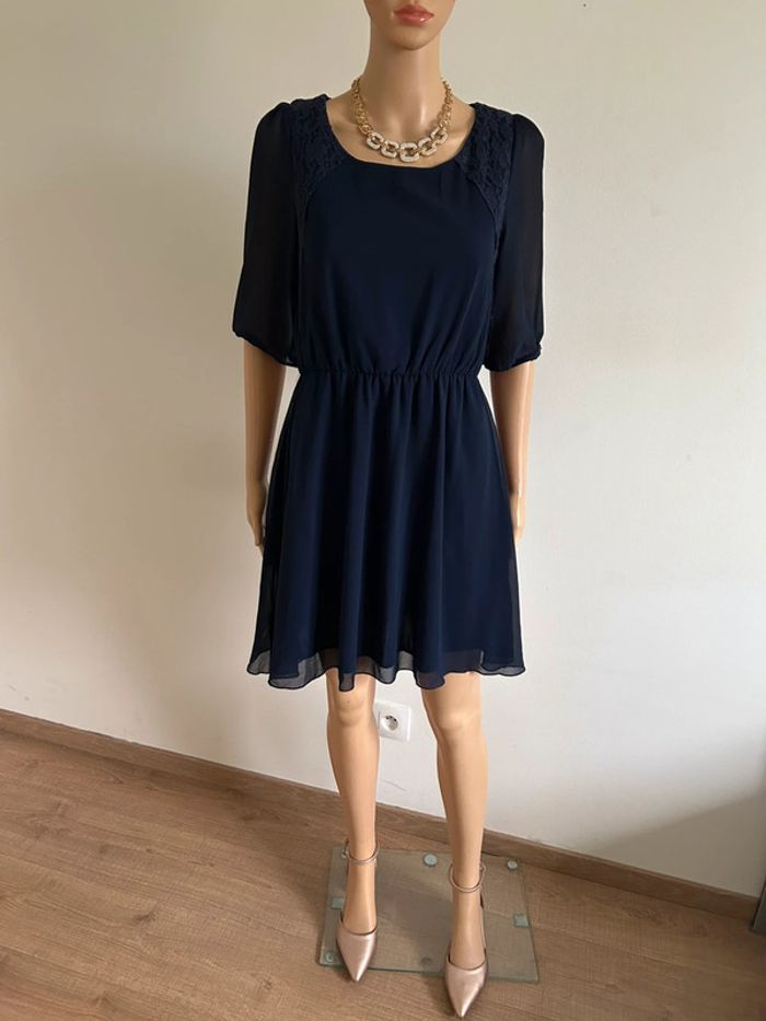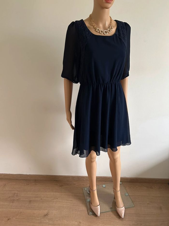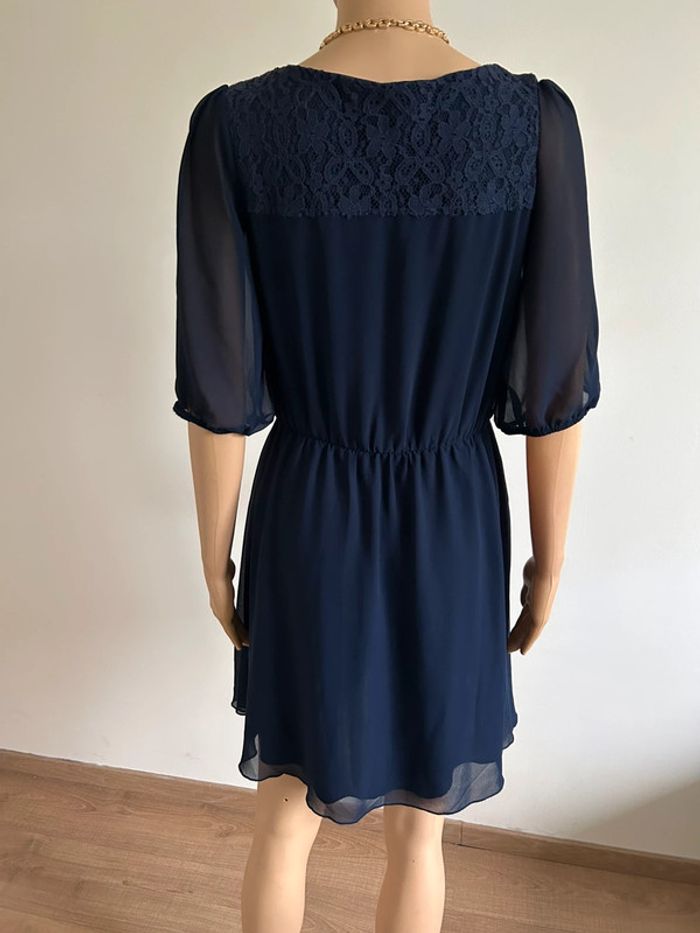 Jolie robe bleue marine à manches courtes, avec dentelle, de marque Molly Bracken. Taille 1 qui correspond à du 36. Peu portée, en très bon état. aisselle à aisselle 44 cms épaule à épaule 37 cms taille 35 cms à 48 cms longueur depuis épaule 84 cms La taille est extensible 80% polyester et 20% coton Le prix reste négociable dans la limite du raisonnable. Un petit cadeau dans le colis 🌸 (Boîte 30)