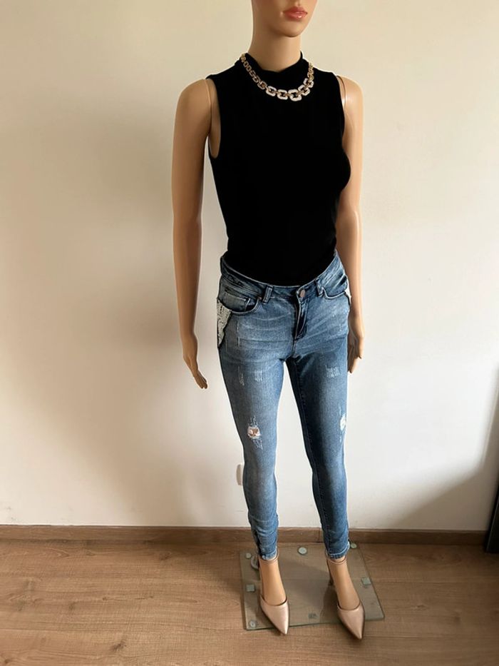 Jean bleu avec dentelle Naf Naf taille 34 excellent état