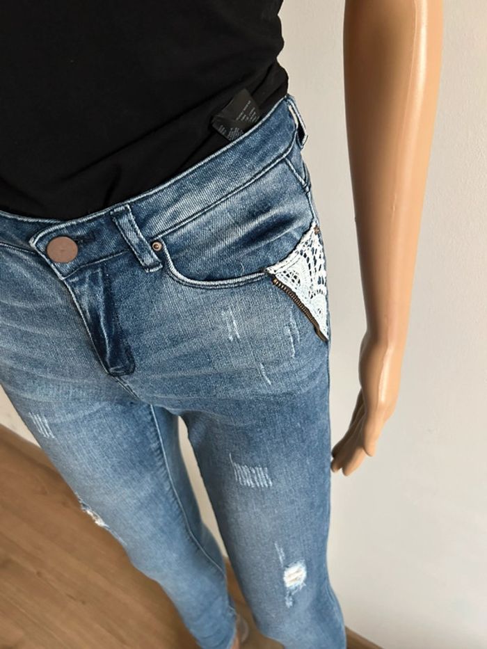 Jean bleu avec dentelle Naf Naf taille 34 excellent état - photo numéro 2