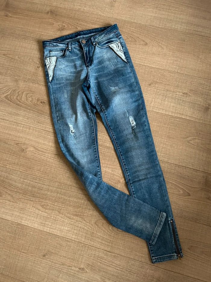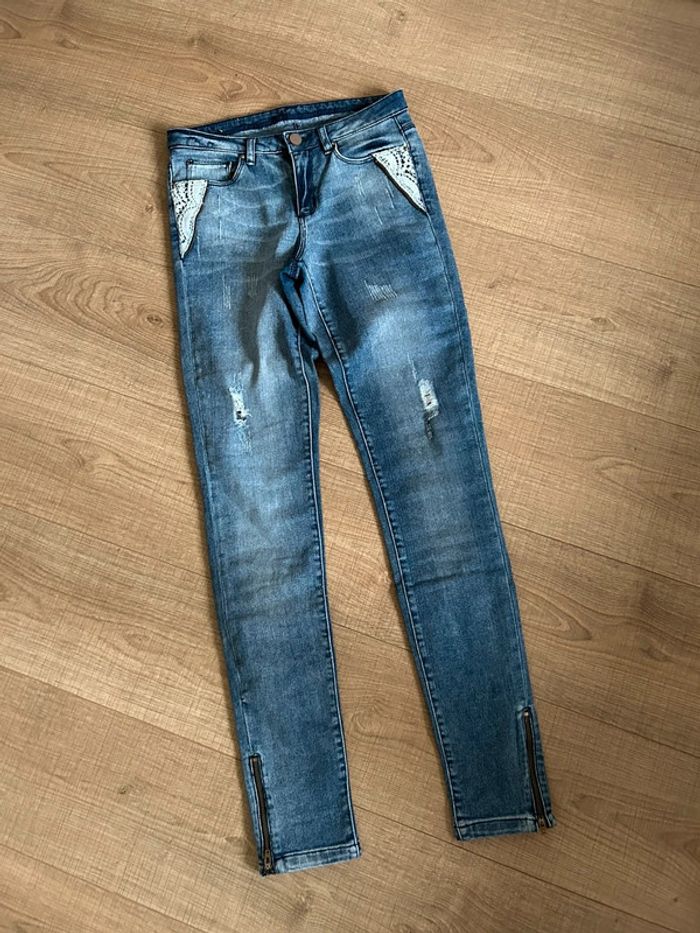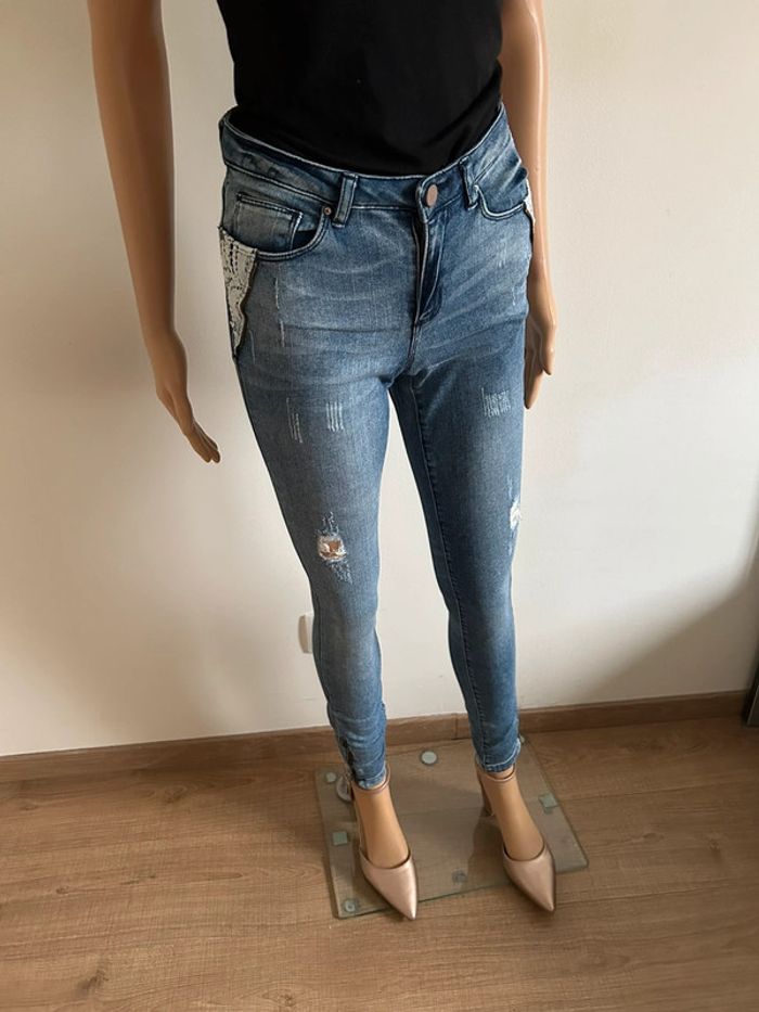 Jean bleu avec dentelle Naf Naf taille 34 excellent état - photo numéro 1