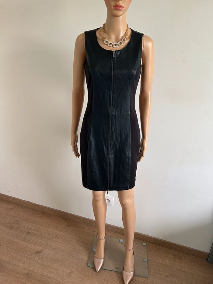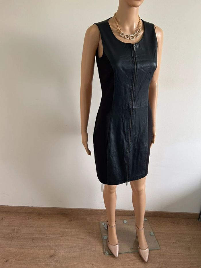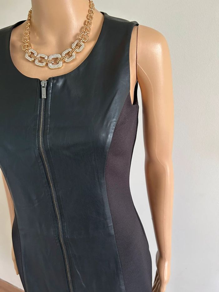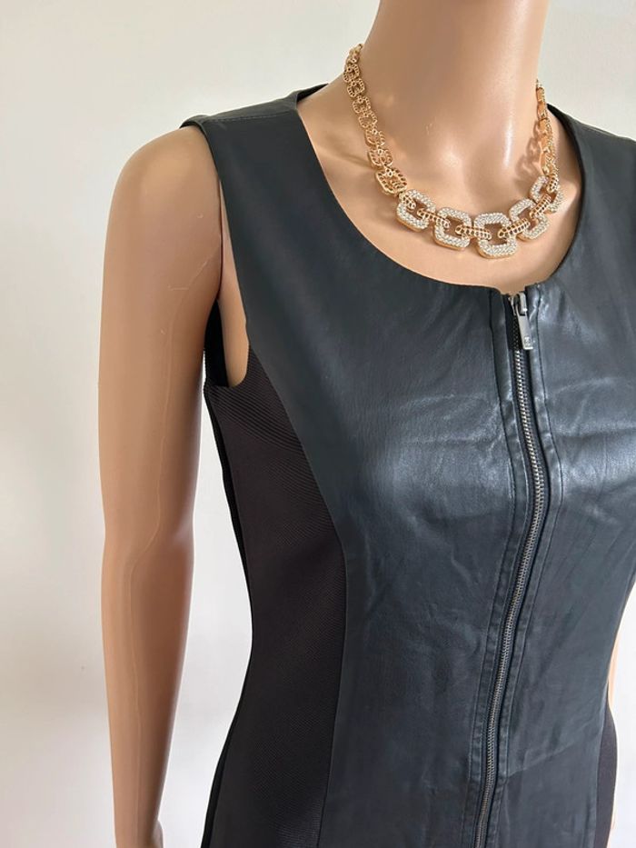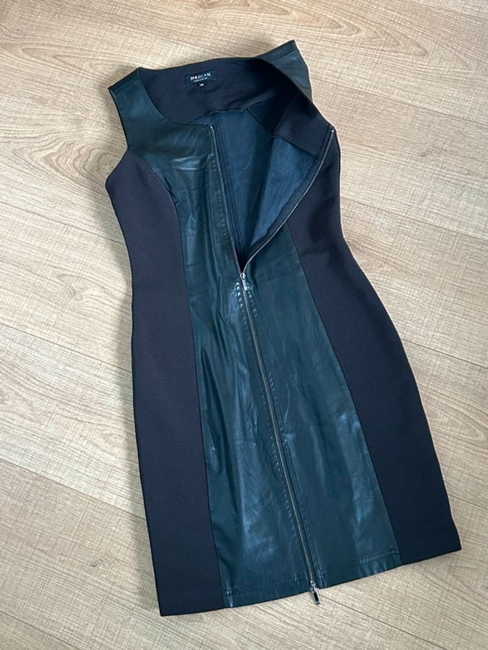 Magnifique robe noire sans manches, avec simili cuir, de marque Morgan. Fermeture sur le devant. Taille XS. Peu portée, en excellent état. aisselle à aisselle 40 cms à 44 cms taille 36 cms et plus longueur depuis épaule 88 cms Le tissu est extensible Étiquette intérieure de composition coupée Le prix reste négociable dans la limite du raisonnable. Un petit cadeau dans le colis 🌸