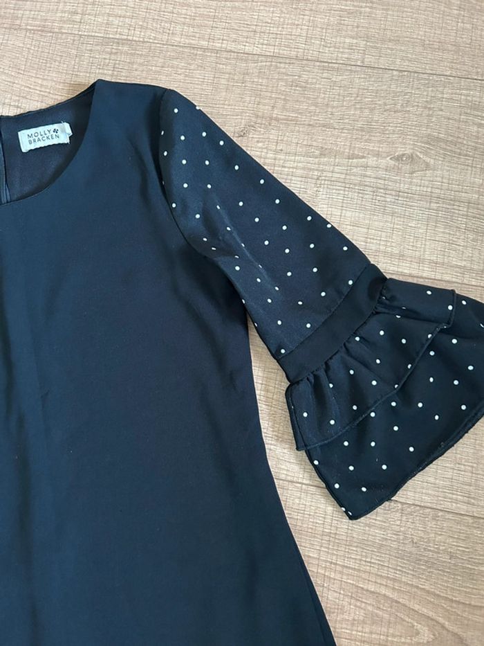 Magnifique robe noire à manches courtes, de marque Molly Bracken. Fermeture dans le dos. Taille XS. Jamais portée, état neuf. aisselle à aisselle 43 cms épaule à épaule 35 cms taille 42 cms longueur depuis épaule 86 cms 100% polyester Le prix reste négociable dans la limite du raisonnable. Un petit cadeau dans le colis 🌸 (Boîte 13)