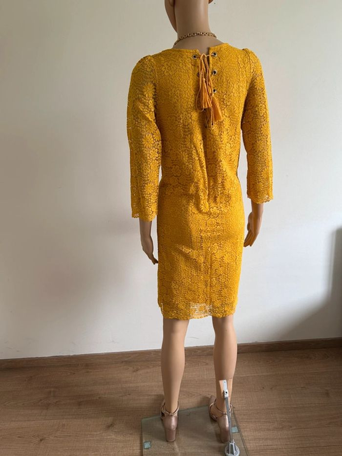 Robe jaune en dentelle Naf Naf taille 38 excellent état - photo numéro 3