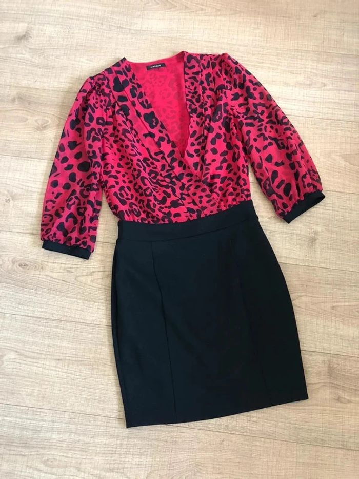 Robe noire et rose fuchsia léopard Morgan taille 34 excellent état - photo numéro 1