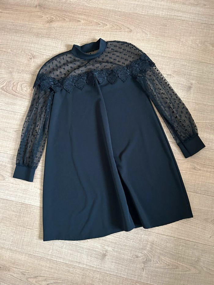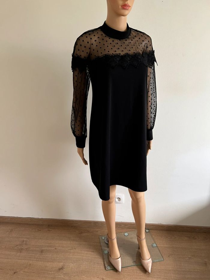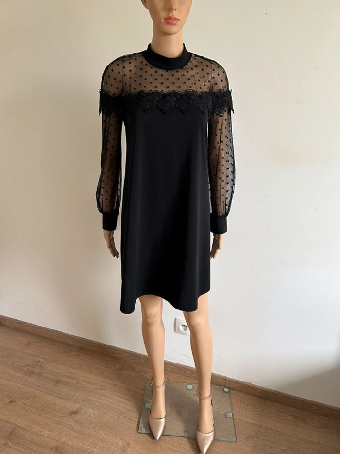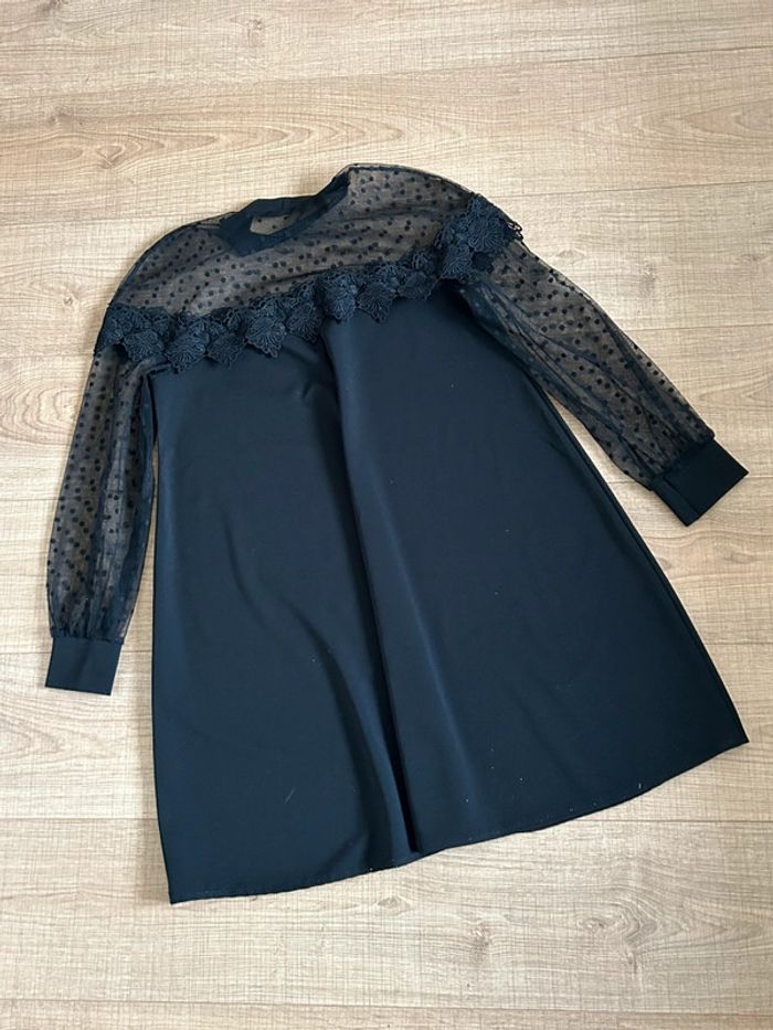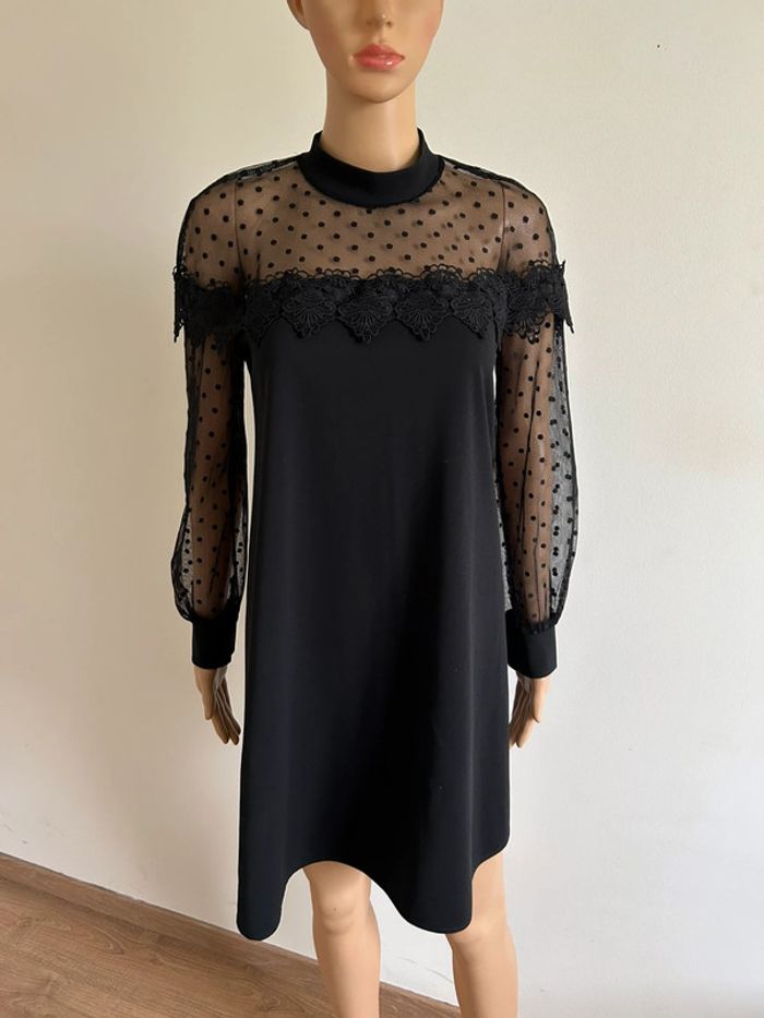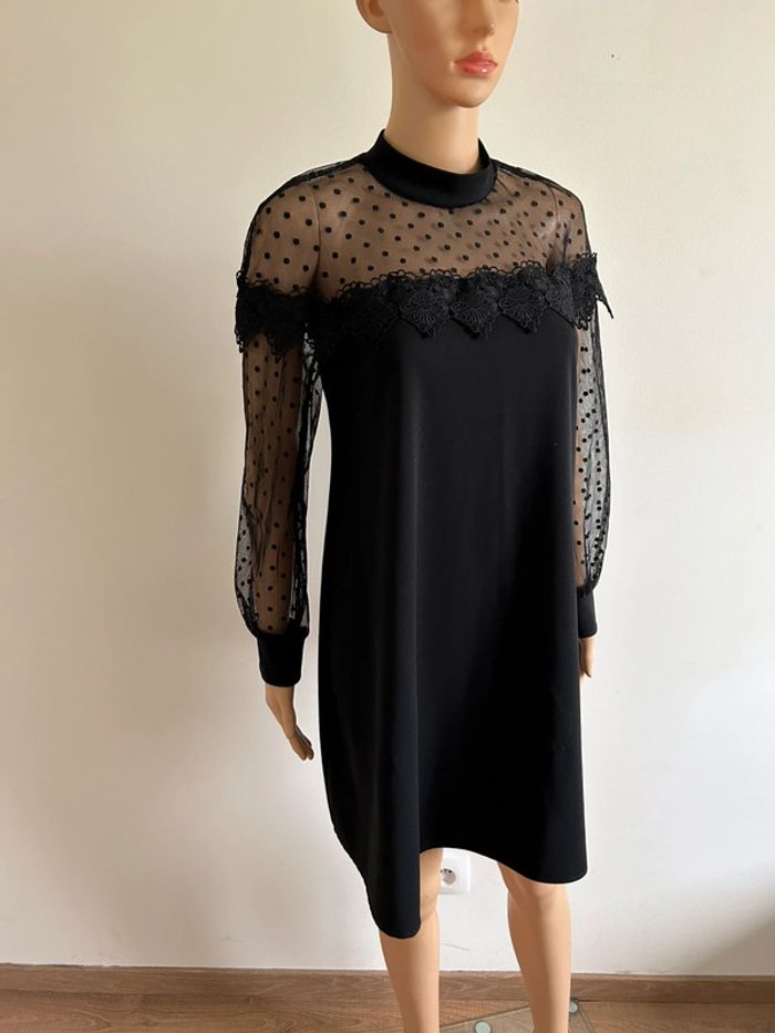 Robe noire à manches longues avec plumetis Made in Italy taille unique jamais portée - photo numéro 3