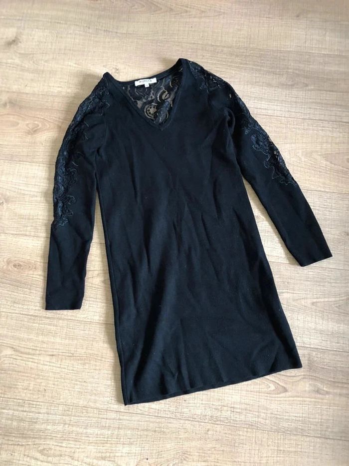 Robe pull noire à manches longues avec dentelle Morgan taille XS TBE - photo numéro 2