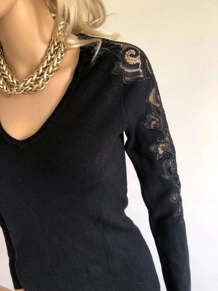 Robe pull noire à manches longues avec dentelle Morgan taille XS TBE - photo numéro 12