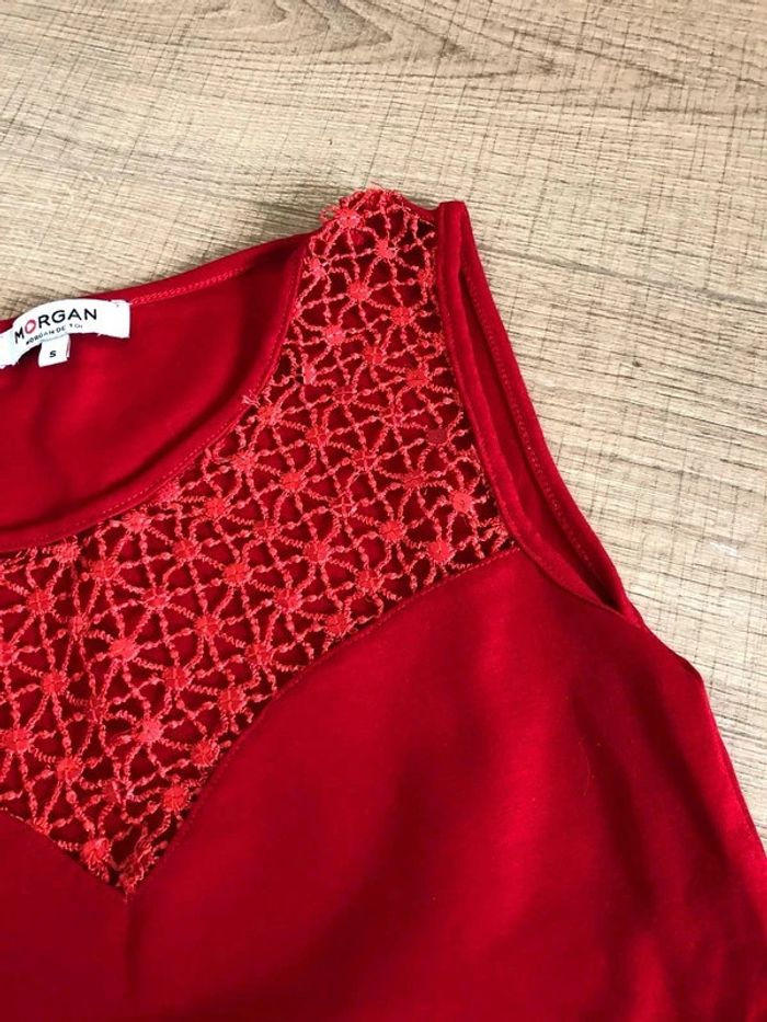 Top rouge sans manches avec sequins Morgan taille S excellent état - photo numéro 14