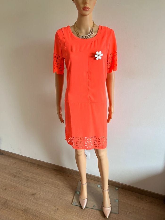 Robe orange fluo neuve à manches courtes Molly Bracken taille 2 - photo numéro 2